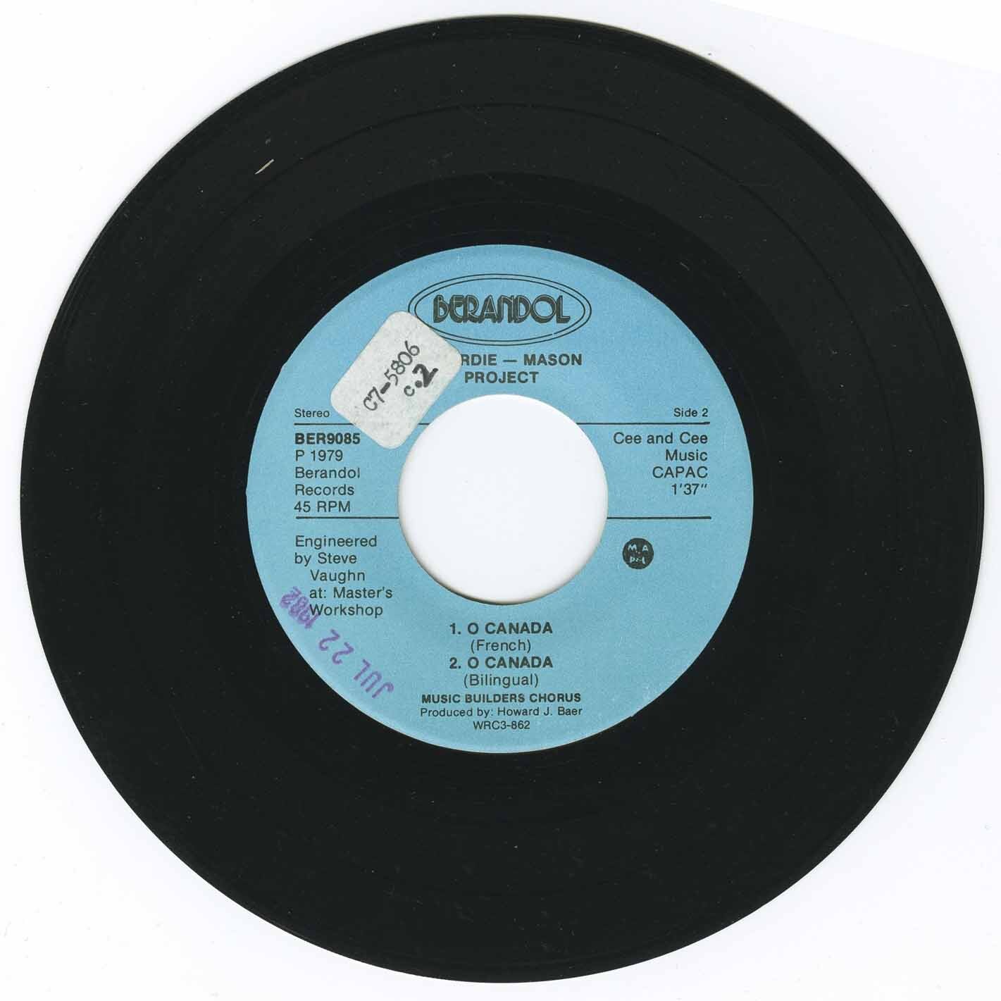 Music Builders Chorus - O Canada (english)/ O Canada (instrumental) b/w O Canada (french)/ O Canada bilingual)