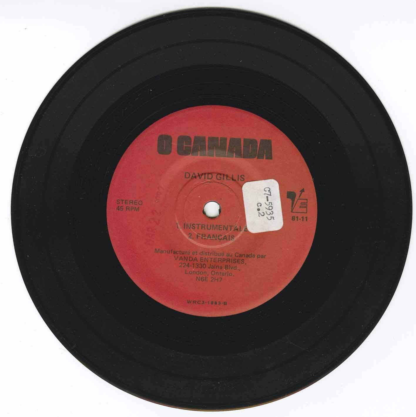 David Gillis - O Canada (instrumental)/ O Canada (english) b/w O Canada (instrumental)/ O Canada (francais)