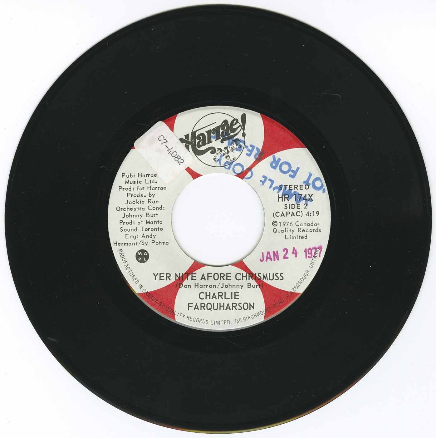 Donald Harron (Charlie Farquharson) / Family Square Dance b/w Yer Nite Before Chrismuss
