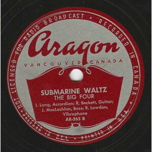 The Big Four with Ron Beckett. Aragon’s Al Reusch was actually more of a pop/jazz fan than a country dude so this 1955 pop/MOR disc may well have been closer to his musical taste than the C&W stuff. This item came originally from Vancouver DJ Jack Cullen’s private collection.