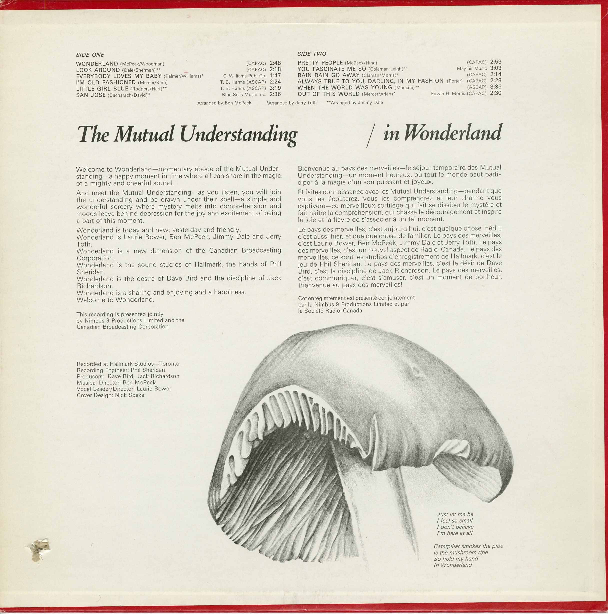 The Mutual Understanding would later record Christmas with Rick Wilkins and the Mutual Understanding for CBC Radio Canada in 1970, and issue two rare non-LP singles — including the highly prized CBC 7-inch pairing Show Me Your Laughter and Summer of ’42. In 2005, In Wonderland was reissued by the Korean Beatball label, confirming its international reputation among collectors and sunshine pop enthusiasts.