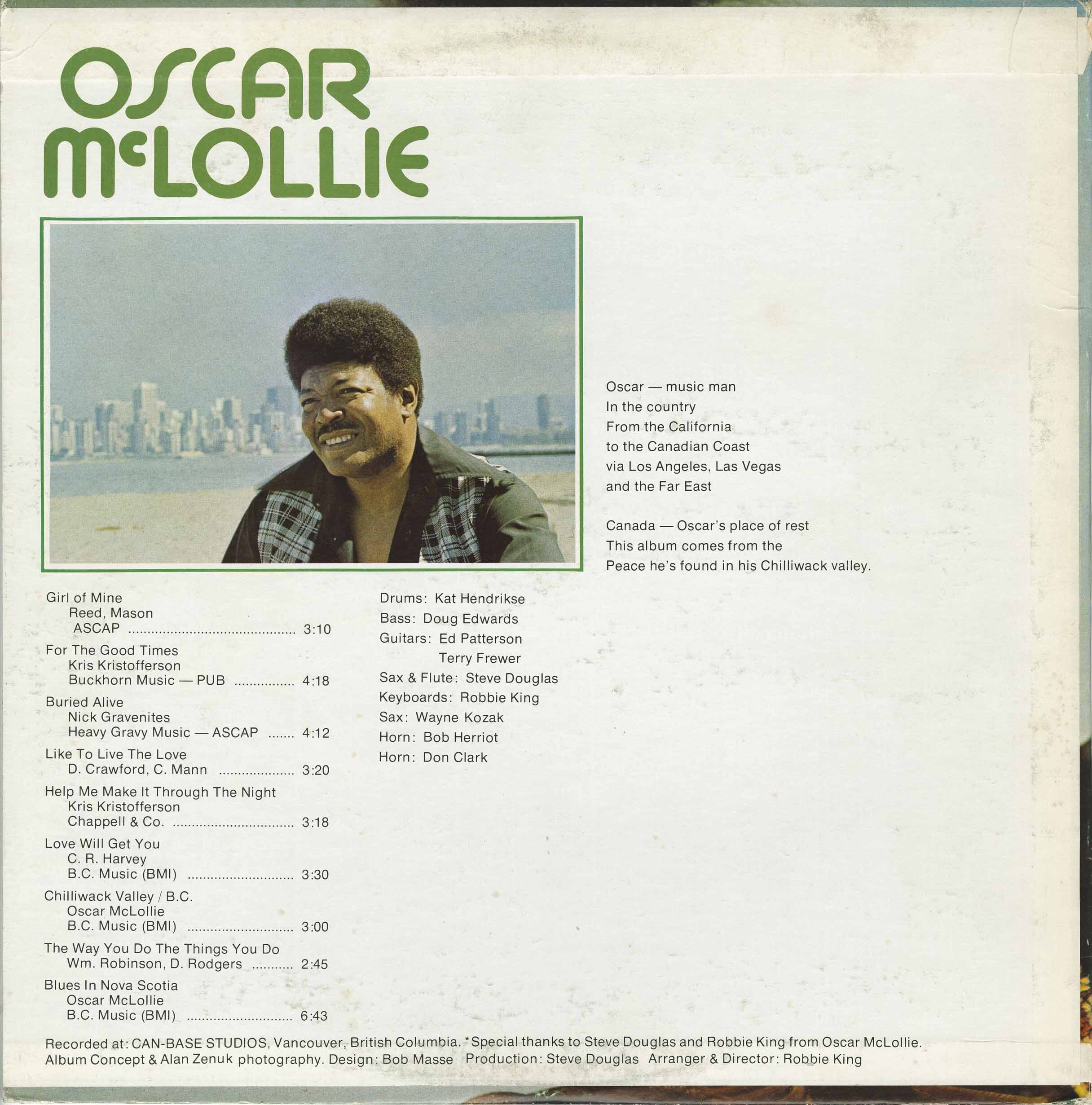 The culmination of his Canadian period was a self-titled LP on Big 3 Records in 1973, with cover artwork designed by legendary Vancouver poster artist Bob Masse. For these sessions McLollie drew upon the city’s finest studio musicians: keyboardist Robbie King, bassist Doug Edwards, drummer Kat Hendrikse, guitarists Terry Frewer and Ed Patterson, saxophonists Wayne Kozak and Steve Douglas, and horn players Bob Rerick and Don Clark. Many of them were active in bands like Papa Bear’s Medicine Show, Spring, and Brahman, while Edwards and Hendrikse in particular had already anchored major Vancouver pop hits, including Terry Jacks’ international success Seasons in the Sun. Their presence gave McLollie’s Canadian work a polish and groove that reflected the very best of the city’s studio sound in the early 1970s.
