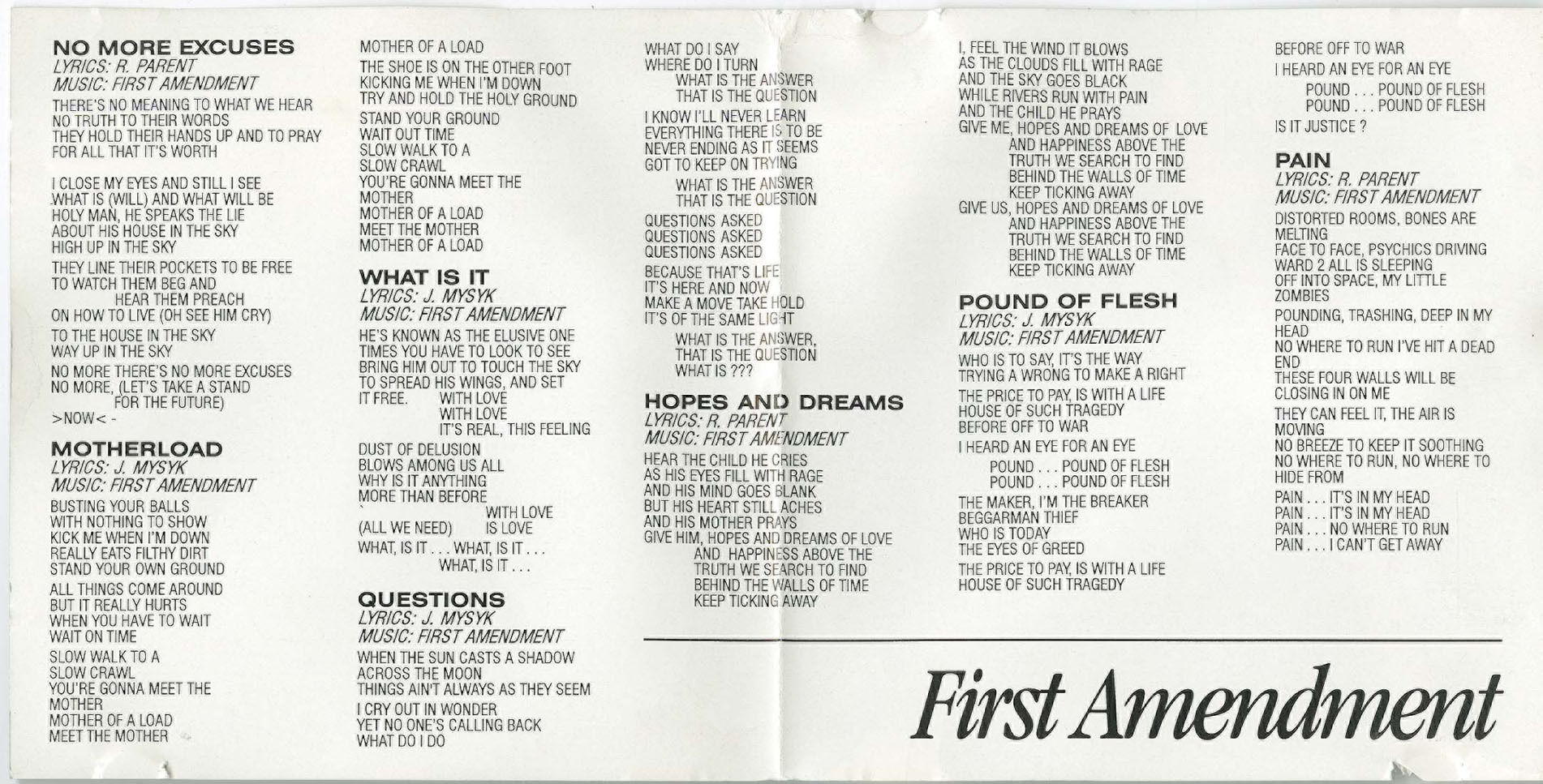 All songs written and arranged by First Amendment