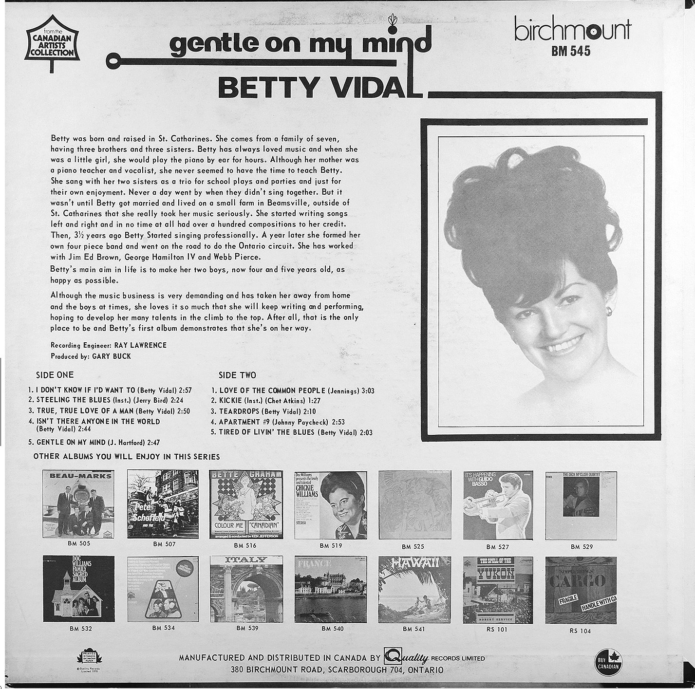 Engineered by Ray Lawrence Produced by Gary Buck