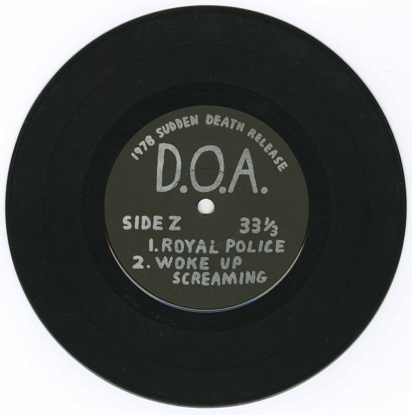 This is the rarest D.O.A. single with the "White Noise Tour 78" cover, probably less than 25 copies printed.