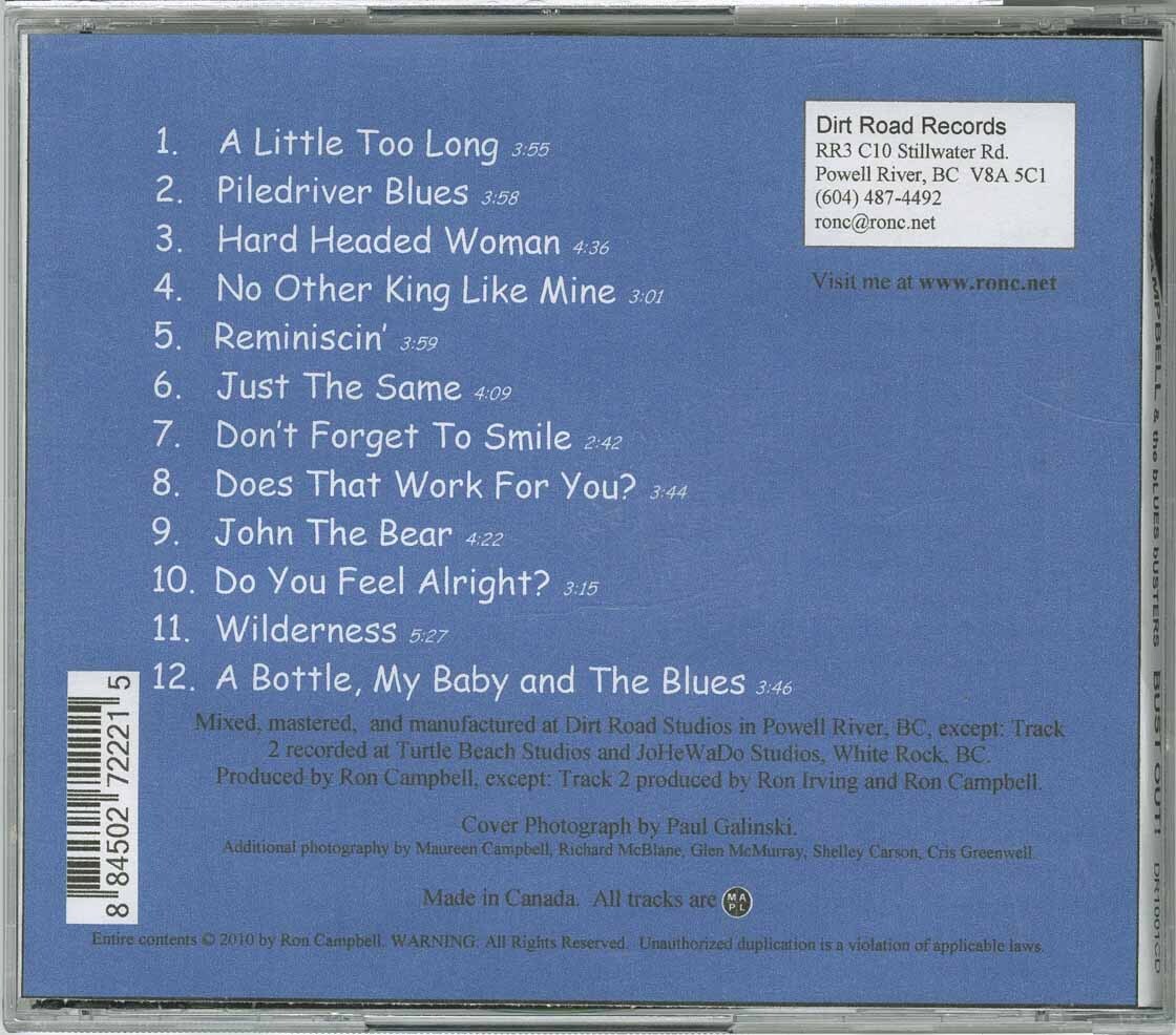 Ron Campbell (guitarist, songwriter): "The Blues encompasses so many different styles; on this album I wanted to explore them all. Mainly, the bLUES bUSTERS play straight-ahead blues/rock - like Hard Headed Woman - but we've also included lots of surprises; A Little Too Long has a country influence; Piledriver Blues is Delta-style with lots of slide Dobro; No Other King Like Mine is pure Gospel with a 12-piece choir backing up Glyn Evans' soulful vocals; Reminiscin' and A Bottle, My Baby and The Blues are quite jazzy; Does That Work For You is a funk groove; Just The Same is classic Chicago-style slow blues; and John The Bear is an acoustic folk-influenced story song, based on the exploits of a famous bank robber in the 1930s, but I've given the tale a surprise ending with a unique Canadian twist. There's even one hard rock song - Do You Feel Alright - where I get to do a bit of guitar shredding. An eclectic bunch of tunes, but all based on The Blues. I hope you like it!"