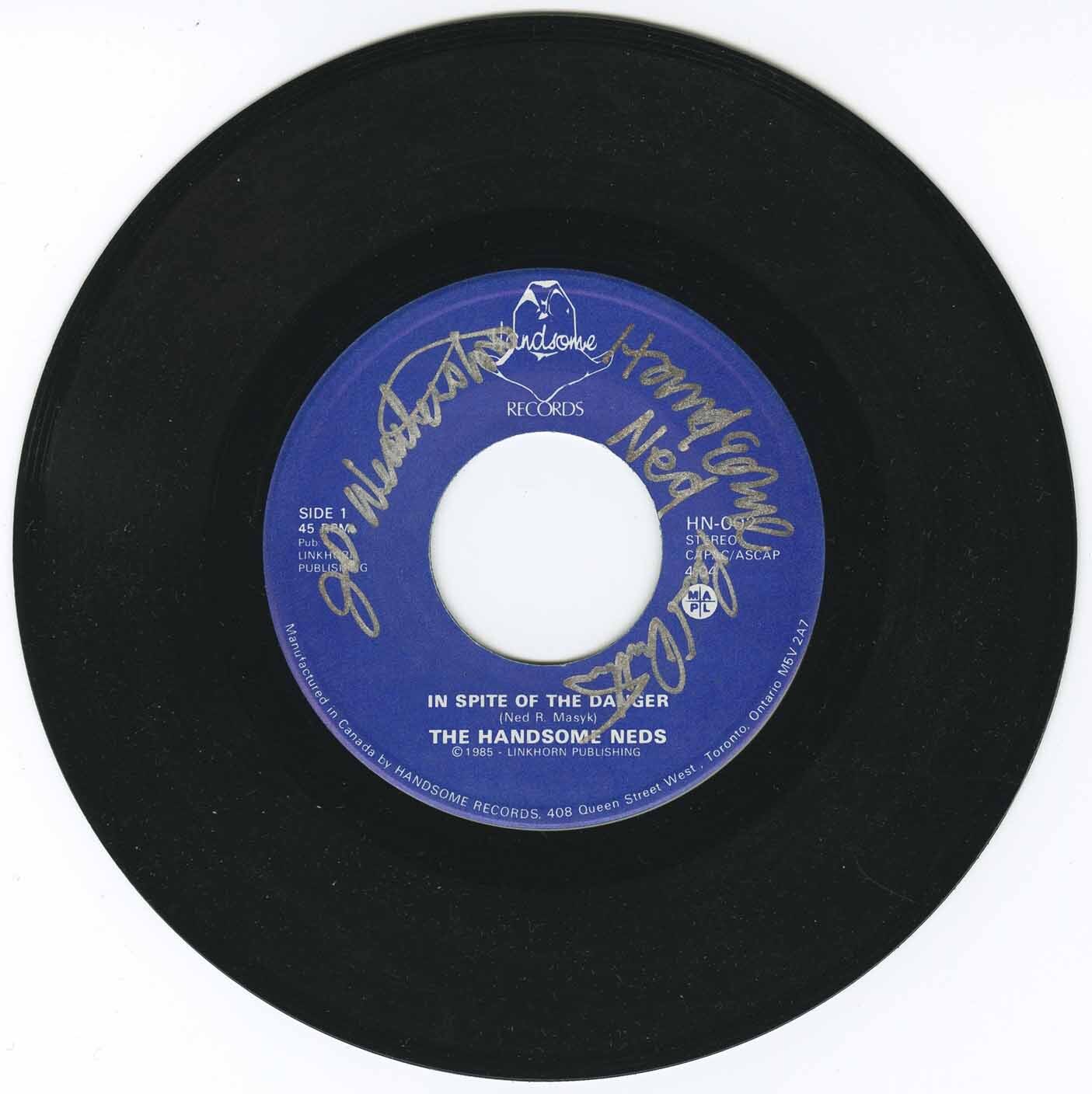 In addition to club performances, Masyk organized annual outdoor gatherings known as the Handsome Ned Picnic on Toronto Island, which featured appearances by fellow Queen Street musicians and helped solidify a growing country-roots community in the city. In 1985 the Handsome Neds released the single “In Spite of the Danger” b/w “Ain’t No Room for Cheatin’,” which received airplay on CKLN, CBC and select country stations in Ontario.