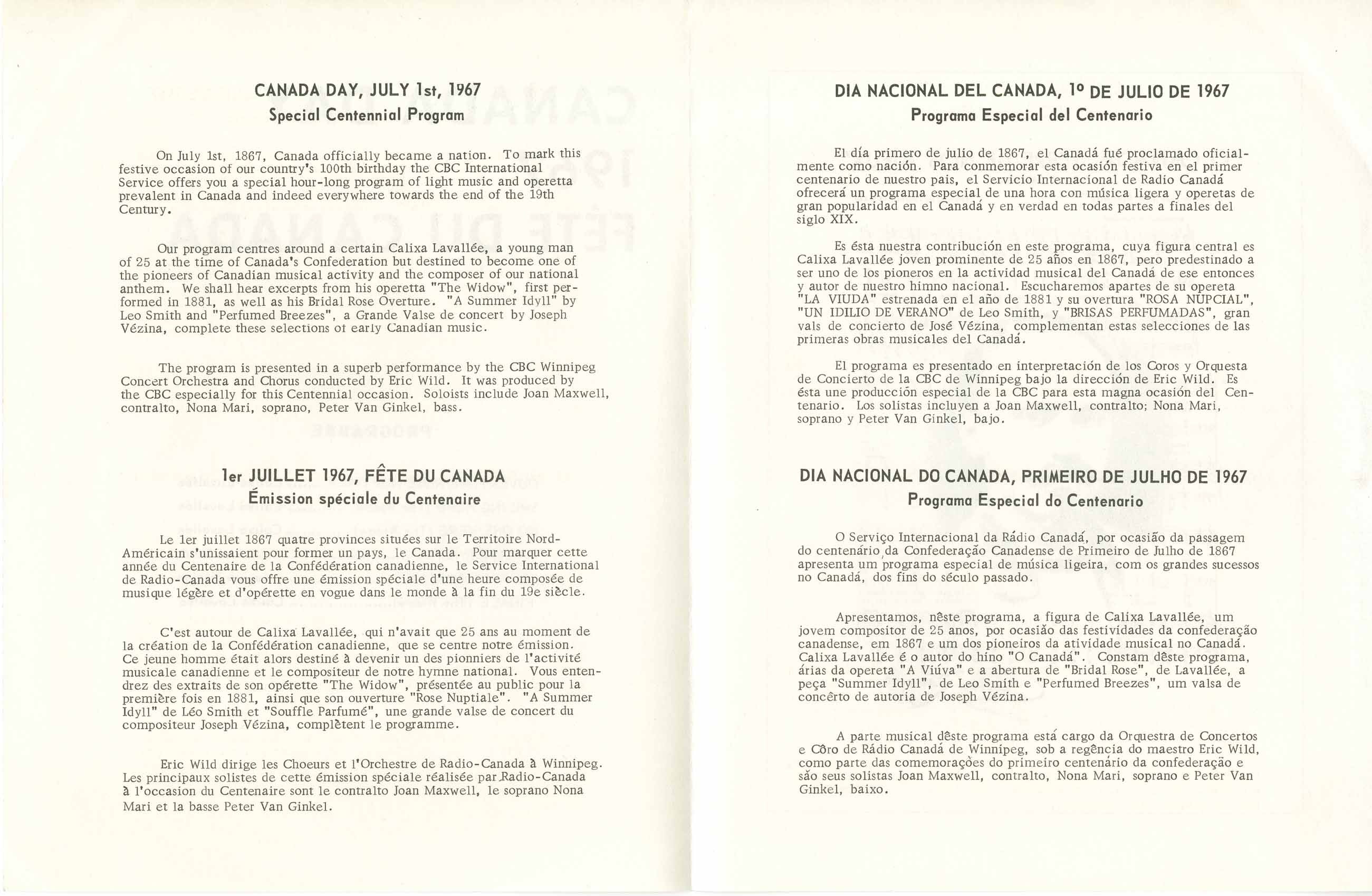 Canada Day Fete Nationale - Special Centennial Program - Program du Centennaire 1867-1967