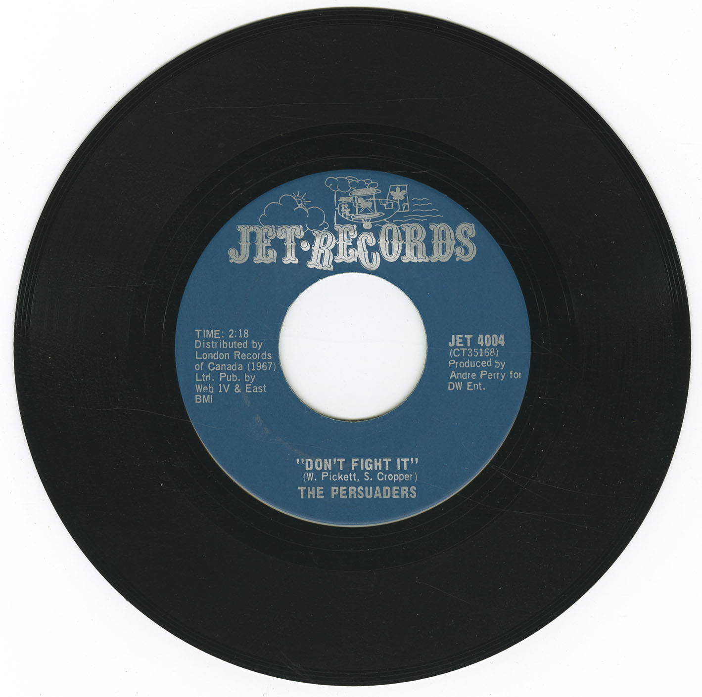 This was followed by The Persuaders (Jet 4004) – “I Found a Love” / “Don’t Fight It.” Gritty soul covers from a group described by label founder Don Wayne Patterson as “one of the finest R&B ensembles in Quebec during the ’60s.” The band’s tight rhythm section and blistering horns translated classic American material into a distinctly Montreal sound.