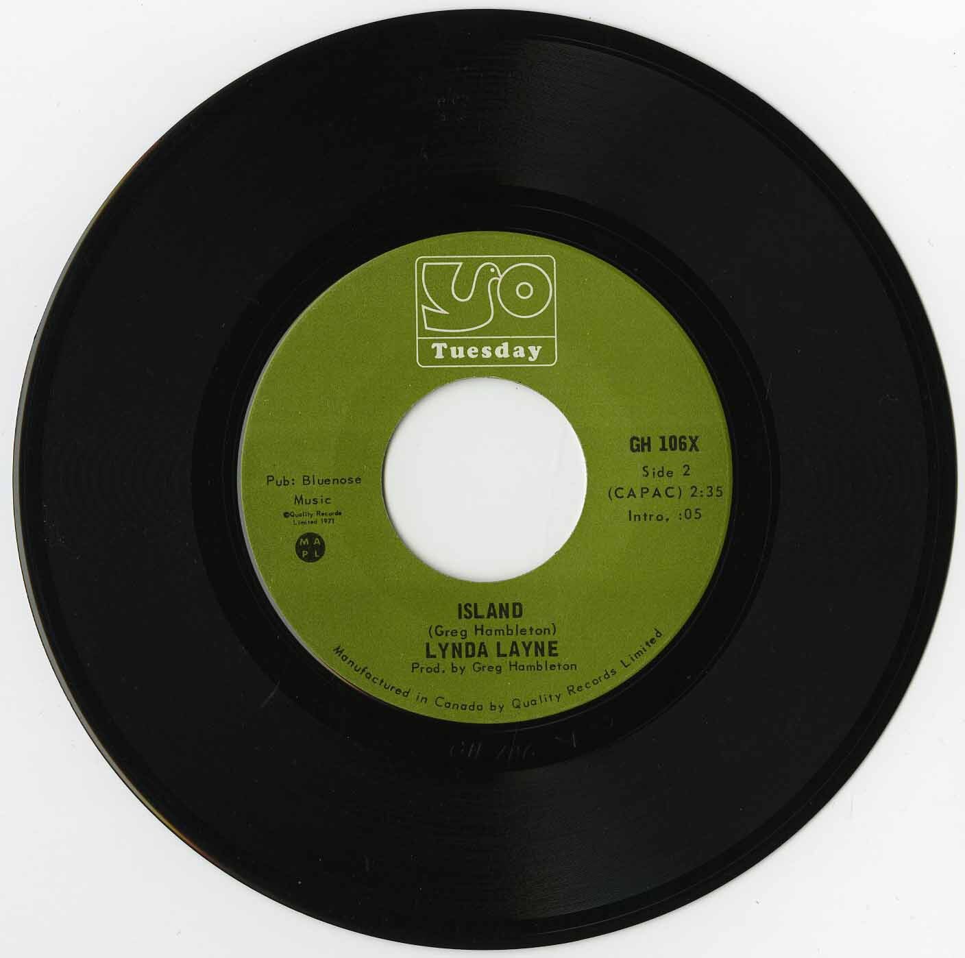 In 1971, Lynda Layne released a striking version of the Rolling Stonesâ âOut of Timeâ on Tuesday Records (catalog number GH 106X), issued as a 7-inch single with a custom picture label on the A-side â a rare feature among Canadian releases of the time. The record was produced by Greg Hambleton, who also composed the B-side, âIsland.â