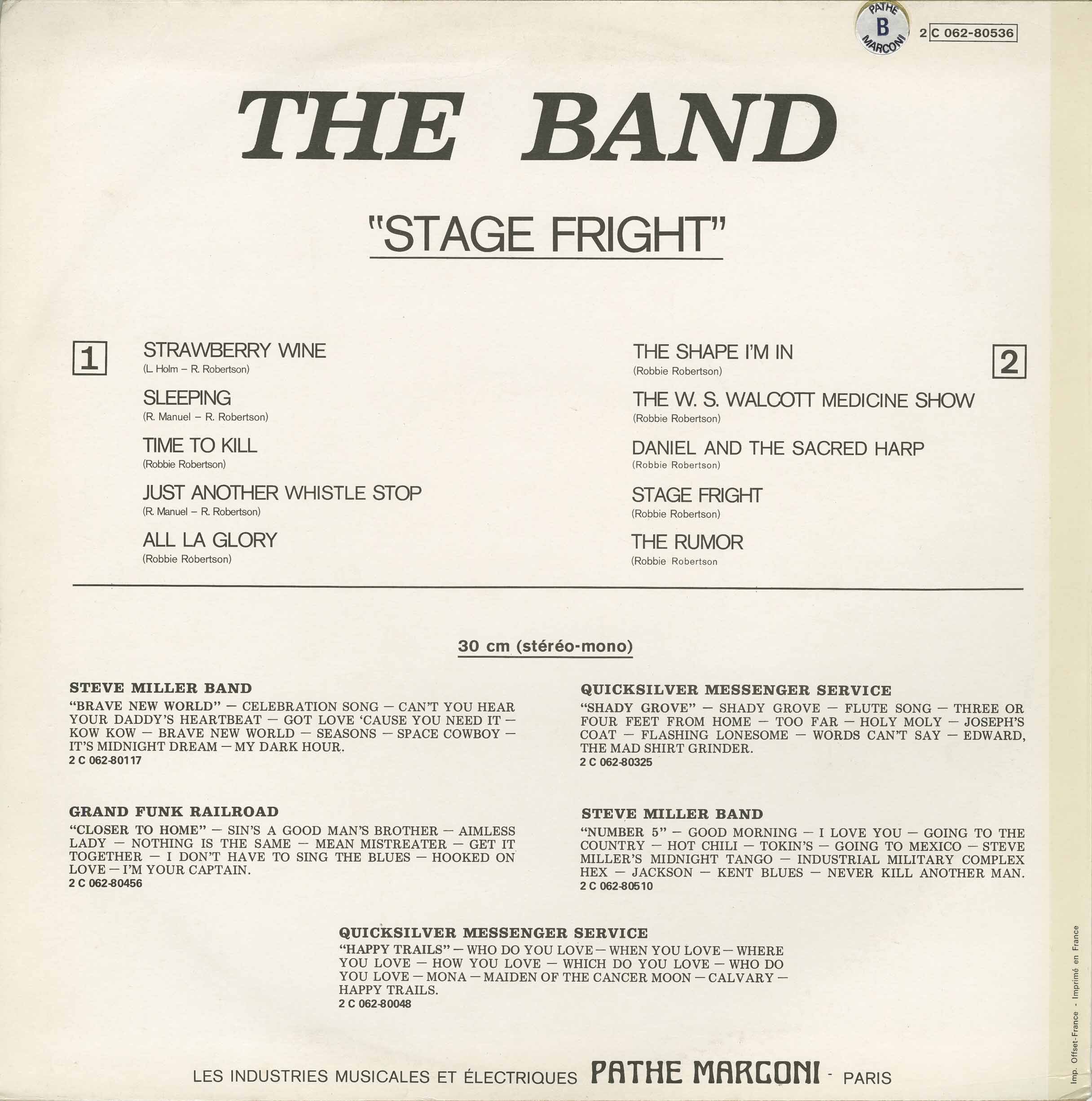 Stage Fright - The Band - (35:41) - 1970 - Capitol SW-425