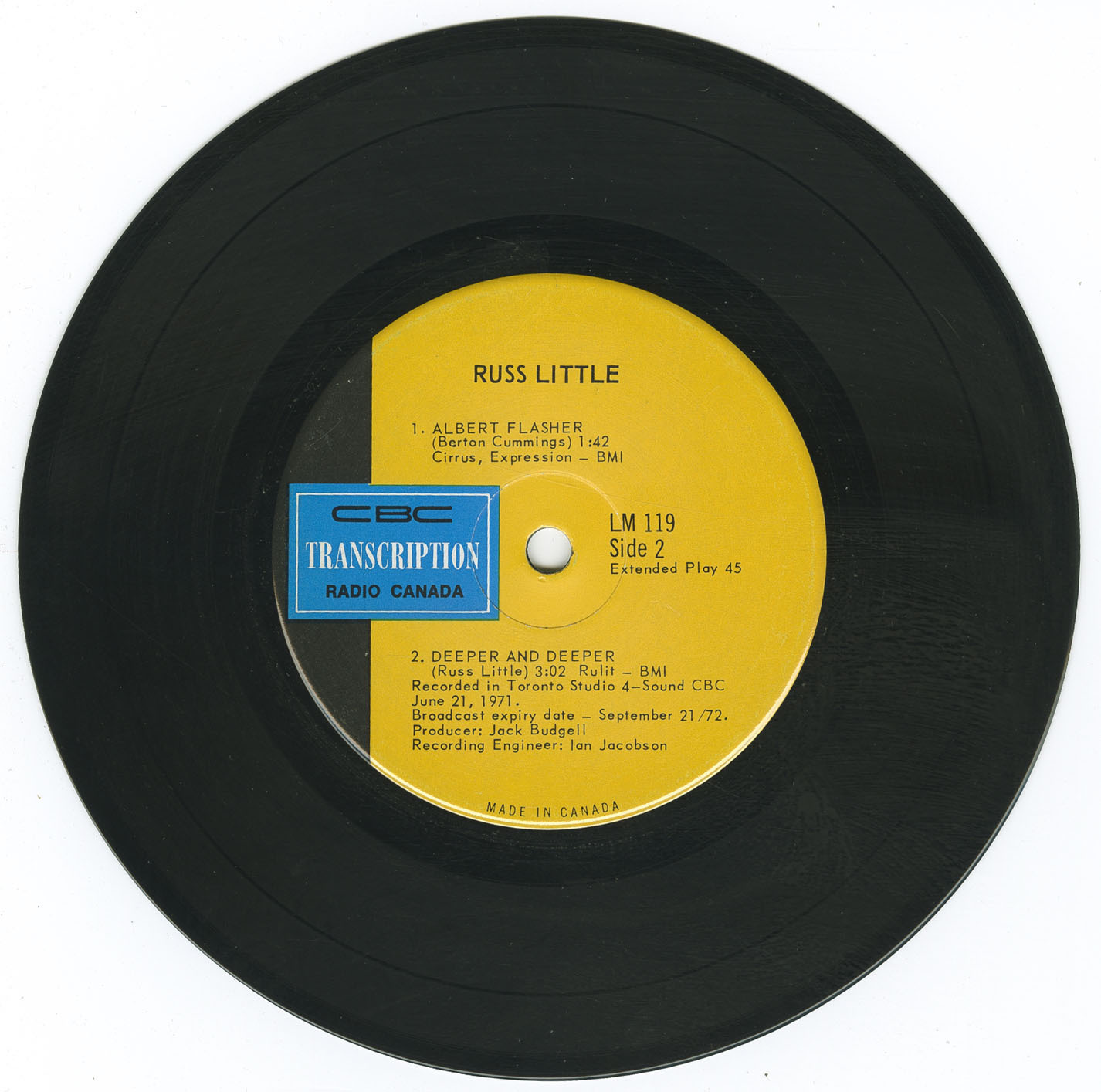 In 1972, Little recorded his only known solo 45 as part of the CBC Radio Canada LM series. Released as CBC LM 119 and recorded at Studio 4-Sound in Toronto on September 21, 1972, the EP features bold, jazz-pop interpretations of David Clayton-Thomas’s “Lucretia MacEvil,” Bread’s “I Want to Make It With You,” and the Guess Who’s “Albert Flasher.” But it's the fourth track—Little’s original composition “Deeper and Deeper”—that truly stands out. A furious, psych-infused blast of swirling guitars, tight horns, and orchestral drama, it delivers a high-octane fusion of jazz and rock that feels like a natural extension of the Lighthouse sound. Remarkably, the session was recorded right between Lighthouse’s breakthrough hit One Fine Morning (1971) and their chart-topping Sunny Days (released just weeks earlier in September 1972), placing Deeper and Deeper squarely within the creative surge of early 1970s Canadian horn-rock. The record remains one of the rarest and most musically adventurous entries in the CBC LM catalog.