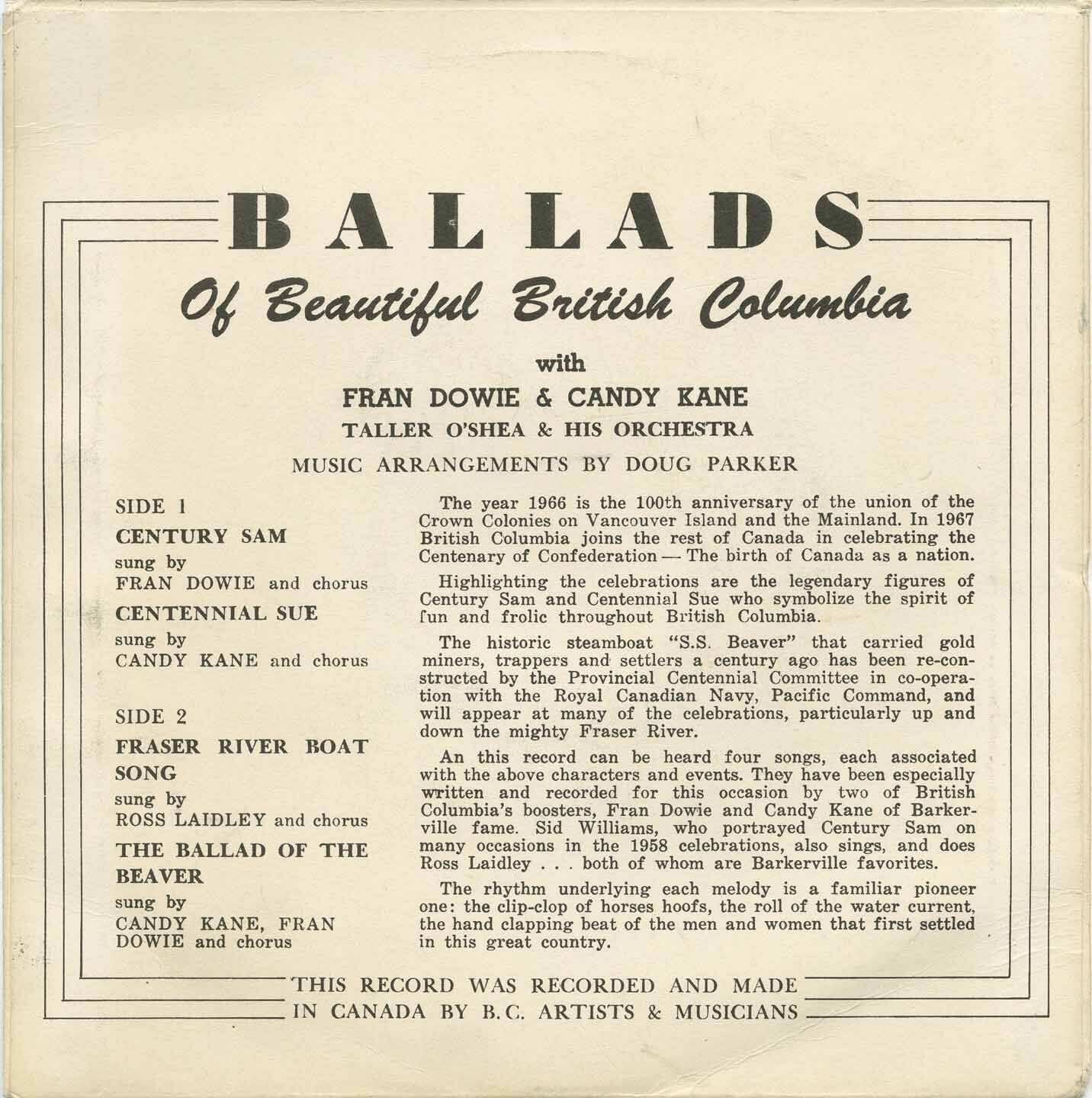 Ballads of British Columbia (musical postcard picture sleeve)