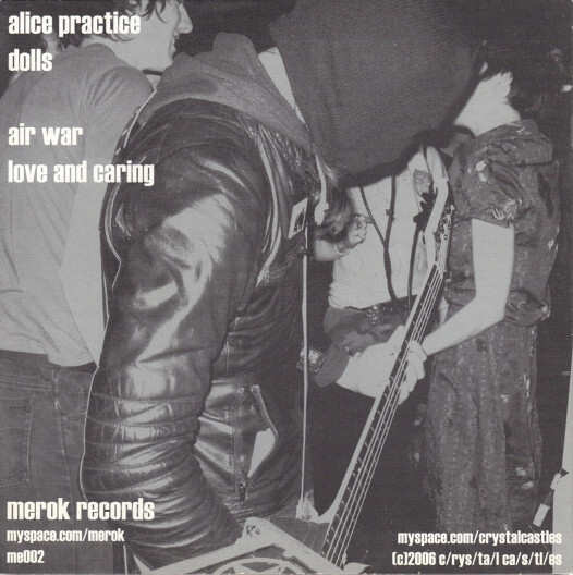 Alice Practice is the debut release from Crystal Castles. The release was limited to 500 copies on 7" vinyl and sold out in 3 days, driving collectors to eBay where the vinyl has sold for $450 in mint condition. The track Alice Practice itself is a soundcheck which was secretly recorded by the sound engineer before the band launched into a recording session of 5 songs in 2005. It was released on Merok Records on 9 July, 2006. The track "Air War" garnered attention from prominent indie website Pitchfork media. The track "Dolls" is exclusive to this release and has never been available on any other official release. The track "Alice Practice" was later performed on the British television series Skins. After being featured on the show the demands for the Alice Practice EP grew rapidly. The song "Air War" is also used as an intro for hardcore band Centurion. In October 2011, NME placed the song "Alice Practice" at number 29 on its list "150 Best Tracks of the Past 15 Years".