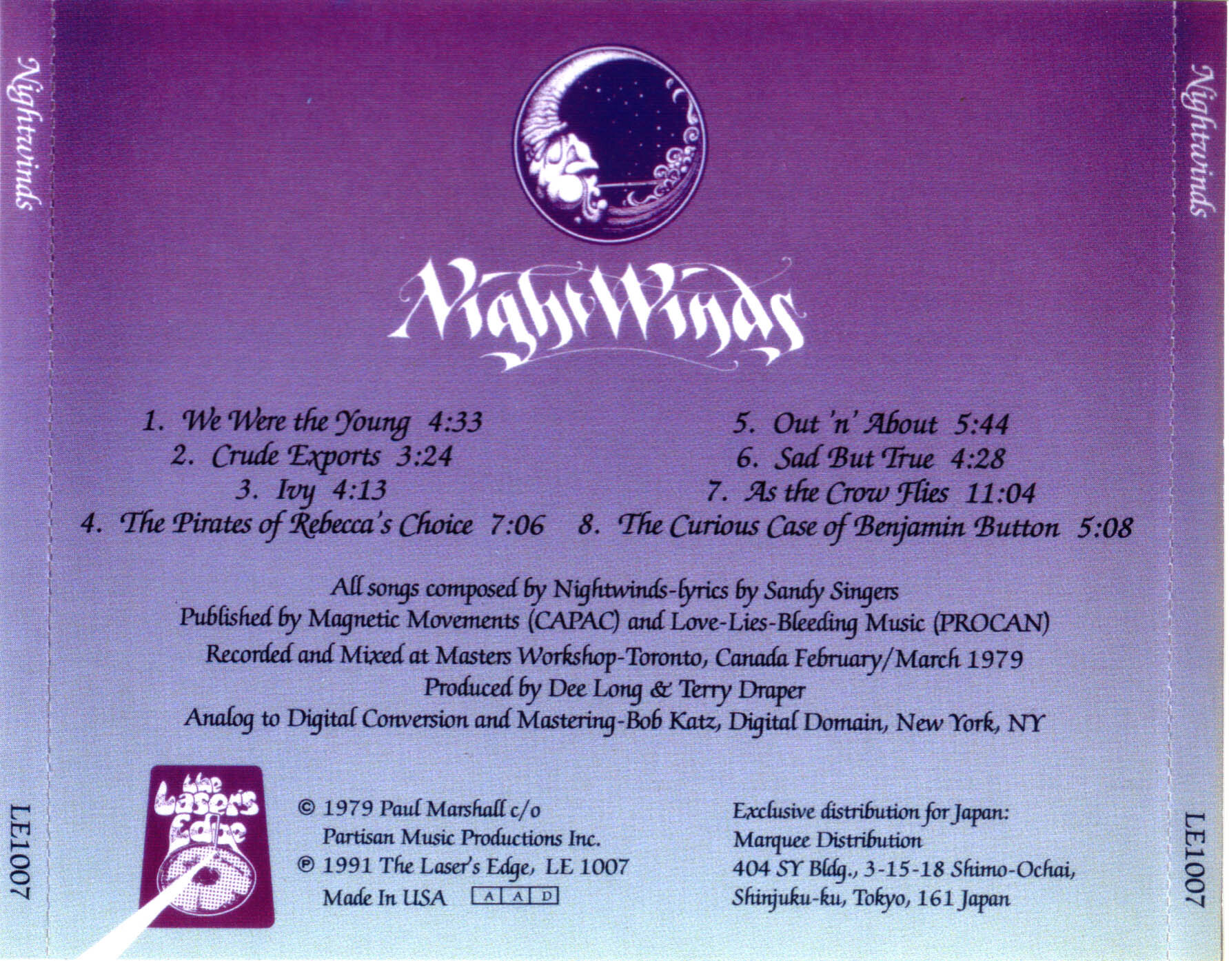 Recorded and Mixed at Masters Workshop - Toronto, Canada February/March 1979.