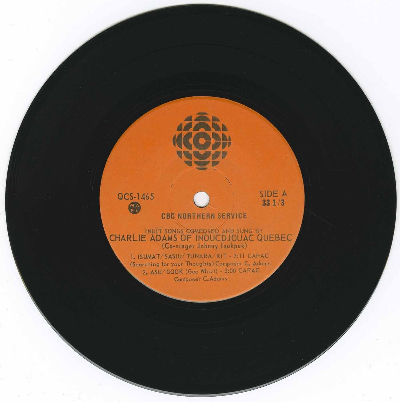 Music came to Adams in his late teens. He began teaching himself guitar around 1973, drawn to the instrument as both a means of expression and a bridge between generations. Upon returning to Puvirnituq, he formed his first band—Sikumiut, meaning “People of the Ice.” The group performed weekly, blending the electric sounds of folk-rock with the heartbeat of the North. Their songs were immediate and joyful, but also steeped in something deeper: the old ways, the legends, the laughter, and the sorrows of Inuit life. In 1976, the group recorded a six-song EP under the same name, issued by CBC Northern Service in collaboration with the Fédération des Coopératives du Nouveau-Québec. Today, People of the Ice is considered one of the rarest and most significant early Inuit rock recordings.