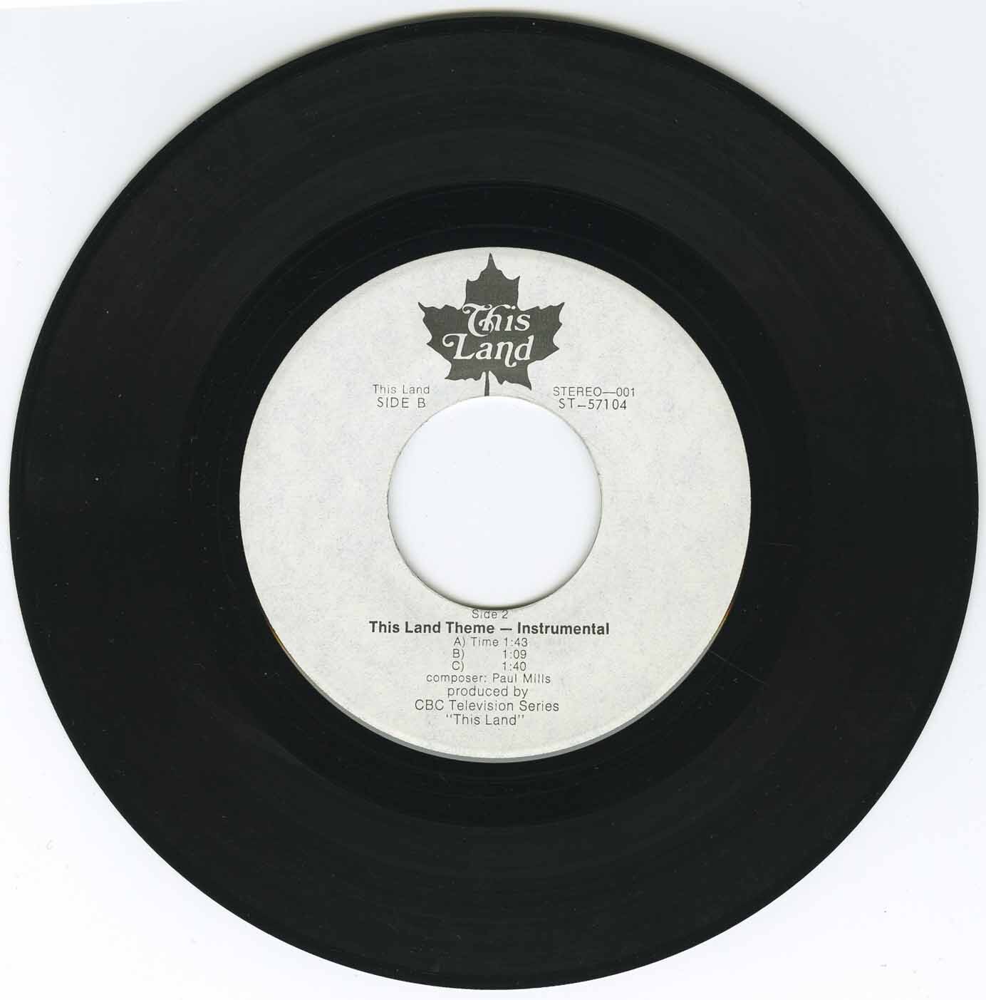 The song was recorded by Mary Chapman, a Toronto vocalist who also co-hosted the series during the mid-1970s. Her delivery was gentle yet powerful, anchoring the music with sincerity and emotional clarity. In 1975 CBC issued the theme as a 45 RPM single, backed with an instrumental version arranged in three shorter movements. The single bore the catalog numbers ST 57103 (Side A) and ST 57104 (Side B), with the etched runouts matching the labels.