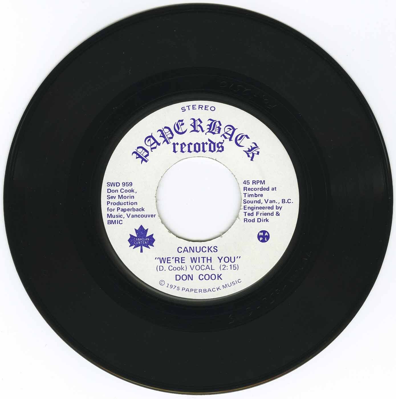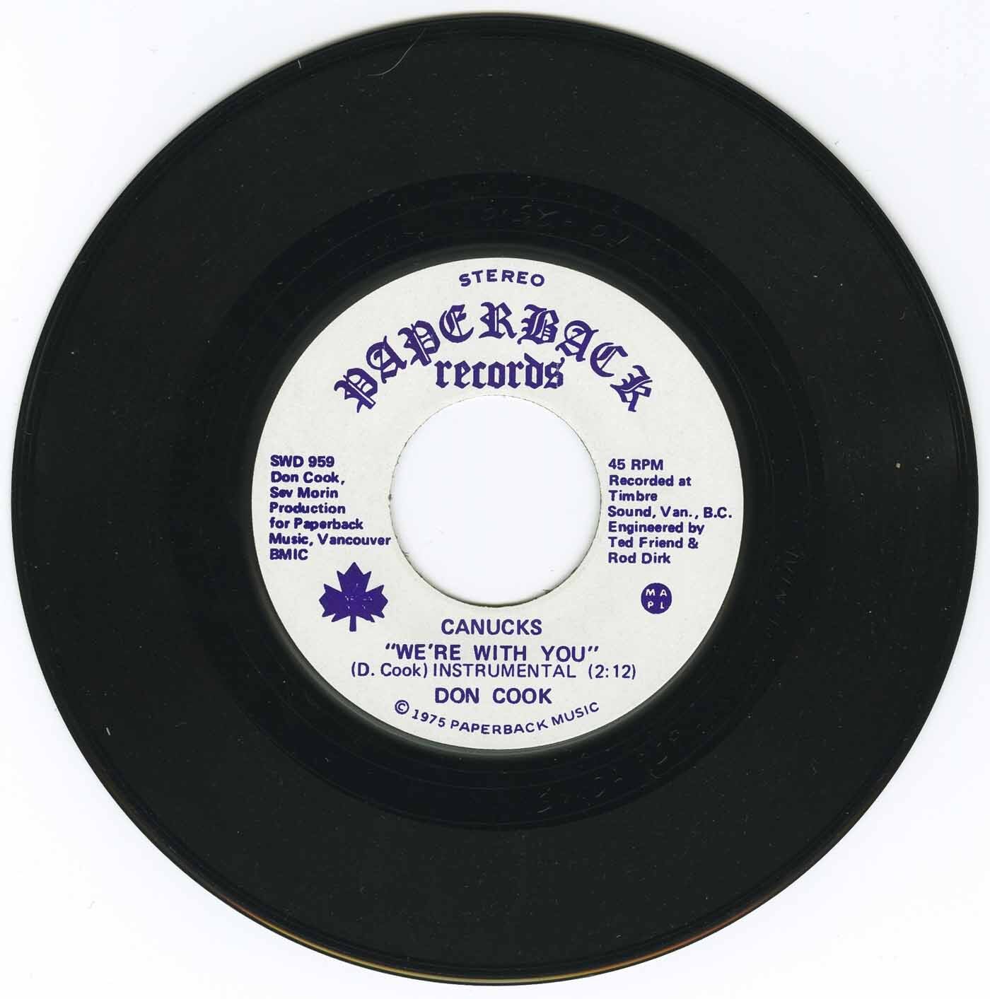 Don Cook - Canucks We're With You (vocal) b/w Canucks We're With You (instrumental) (picture sleeve)
