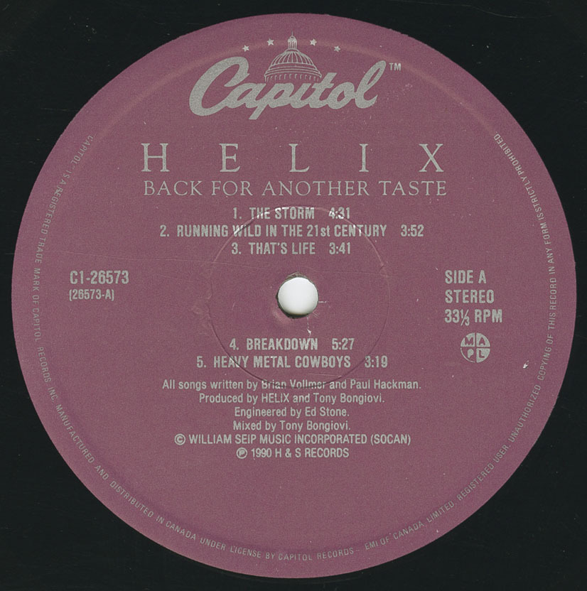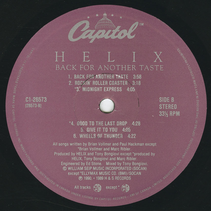 All songs written by Helix Music (Brian Vollmer and Paul Hackman) (tracks A1 to B2, B5, B6); and Marc Ribler (tracks B3, B4)
