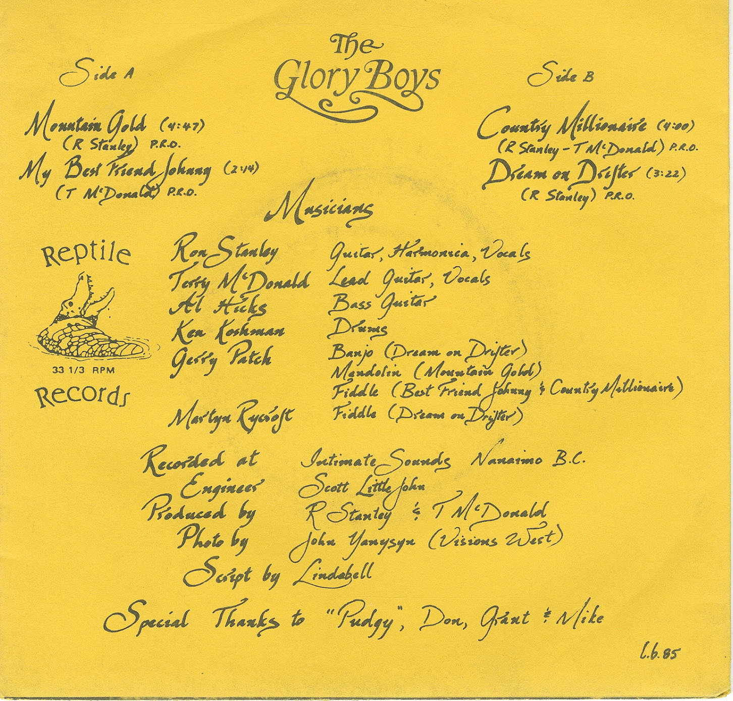 Gerry Patch: banjo on 'Dream On Drifter'; mandolin on 'Mountain Gold'; fiddle on 'Best Friend Johnny' & 'County Millionaire'