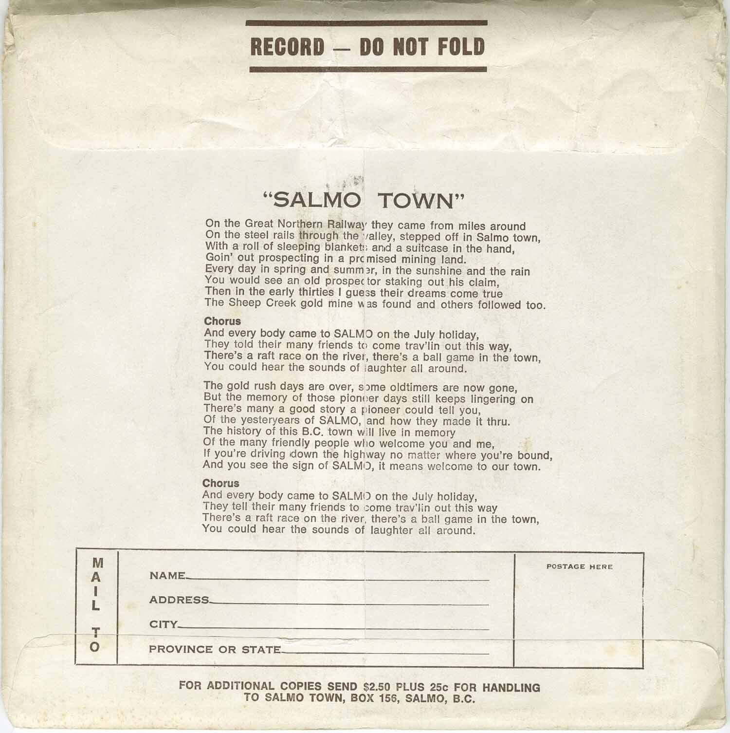 Salmo Town b/w Riverboat In The Rain (picture sleeve)