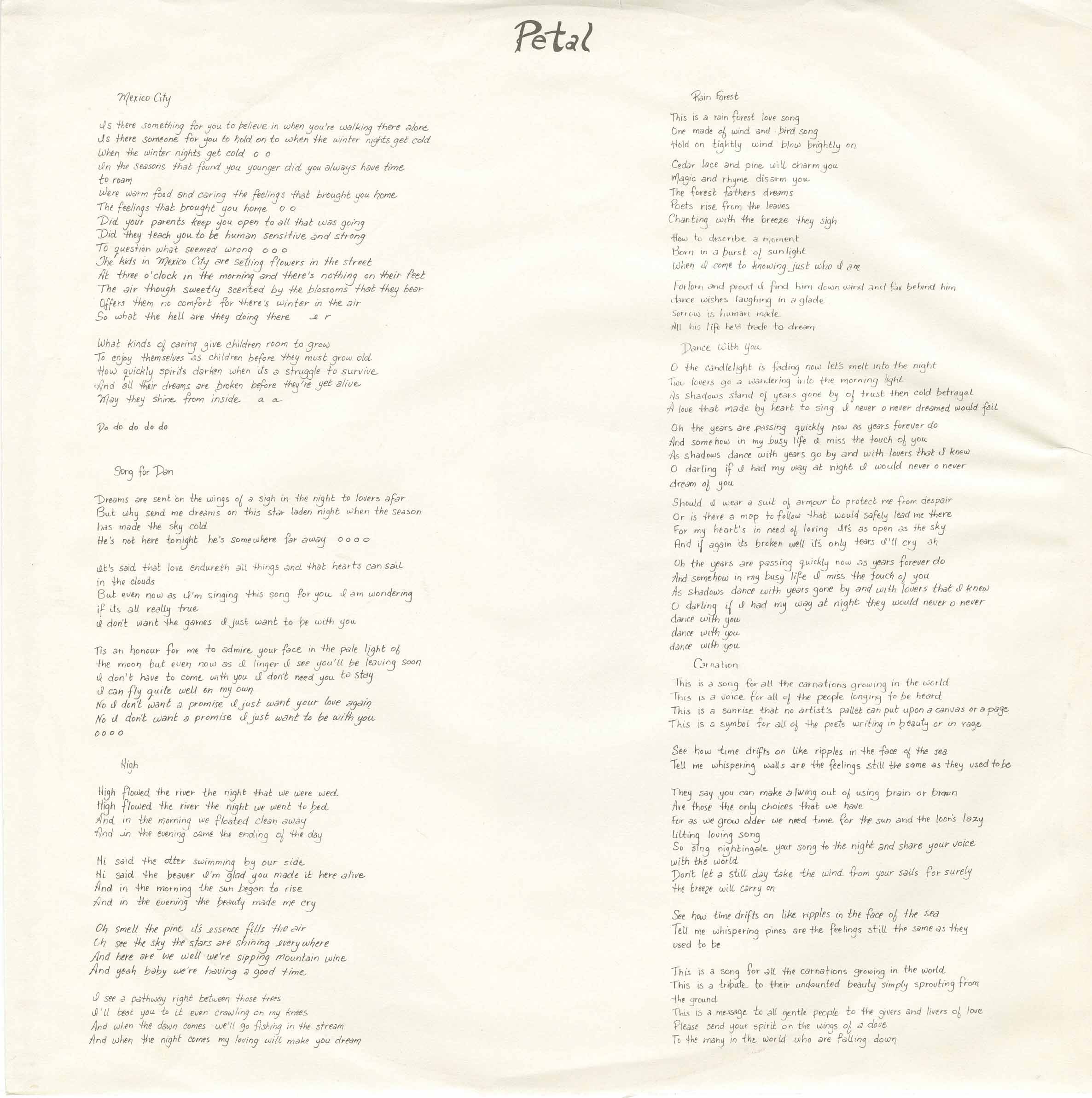 I remember when an album was the dream. This was recorded at BullFrog Studios in Vancouver BC May 1984. Bob Press on bass, Andy Smyth on piano, Brent Saklofske on electric and classical guitar, John Roles, electric on Mexico City, Still Lost in Love. Jim McCann on drums, Martin Hykin on mandolin, Eugene Osadschy cello, Kelt Eccleston, Bob Press, Andy Smyth, John Roles background vocals
