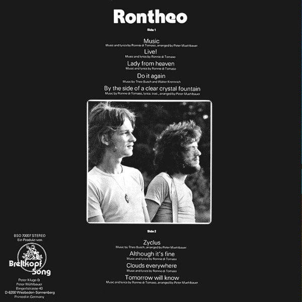 Ever since they met in 1974 at the famous "Steckdose" - a renowned folk club in Germany's Saarland - Rontheo have been touring and recording with different formations, such as Noah's Road Show, Jacara, Abbittibbi, The Groove Merchants and many others, sometimes together, sometimes apart, all over Europe, Canada, and the USA.