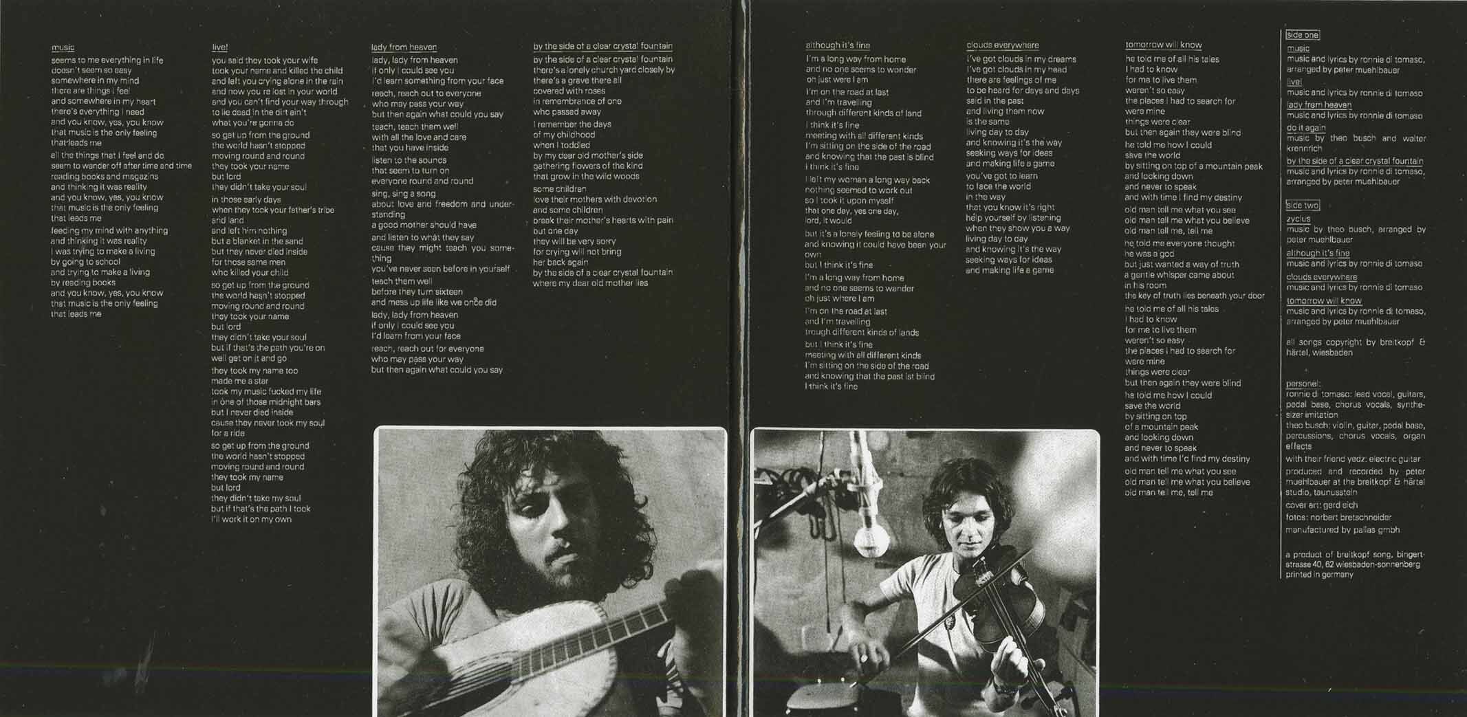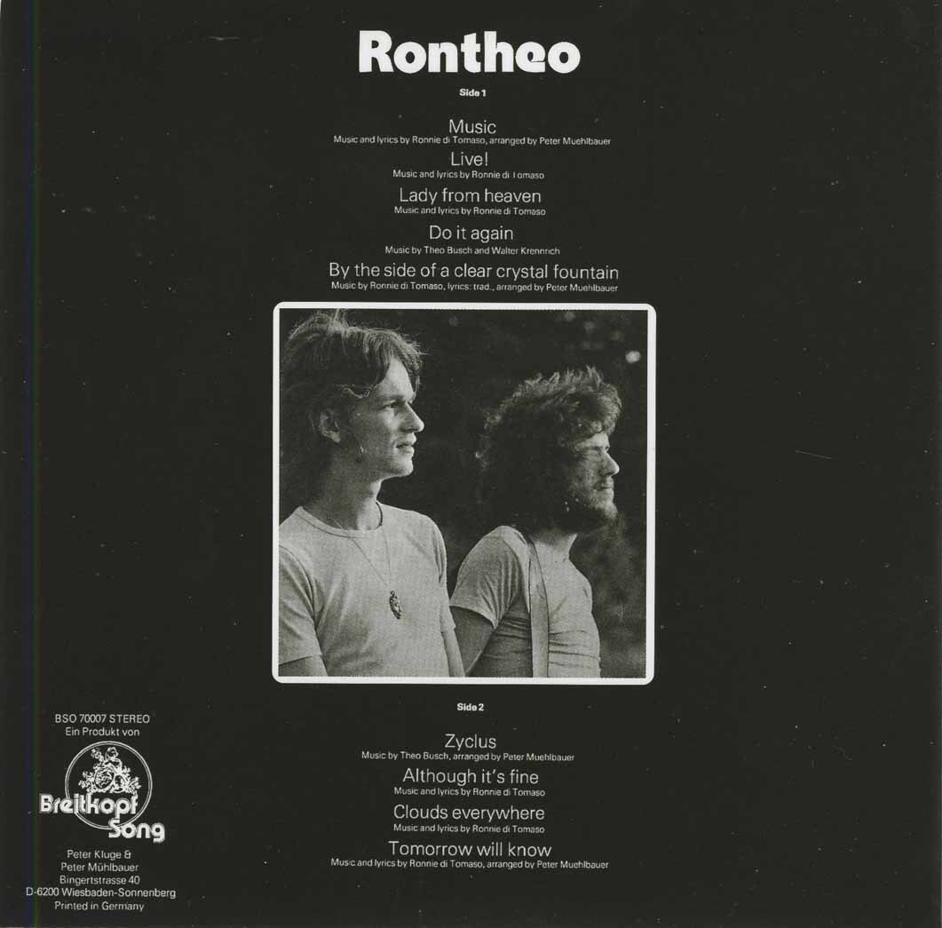 The name of this group comes from the first components blocks: Ronnie Di Tomaso (guitar, voice) and Theo Buch (violin, percussions). With their friend YEDZ, they recorded this outstanding LP in Germany in 1976... it's fresh folk rock, sung in English, and as usual many sellers consider it as psychedelic folk rock (maybe to sell it at a better price), anyway this is another little jewel coming from Germany and its value is growing day by day (400 US Dollars)... the gatefold cover is also great with a beautiful fantasy design...