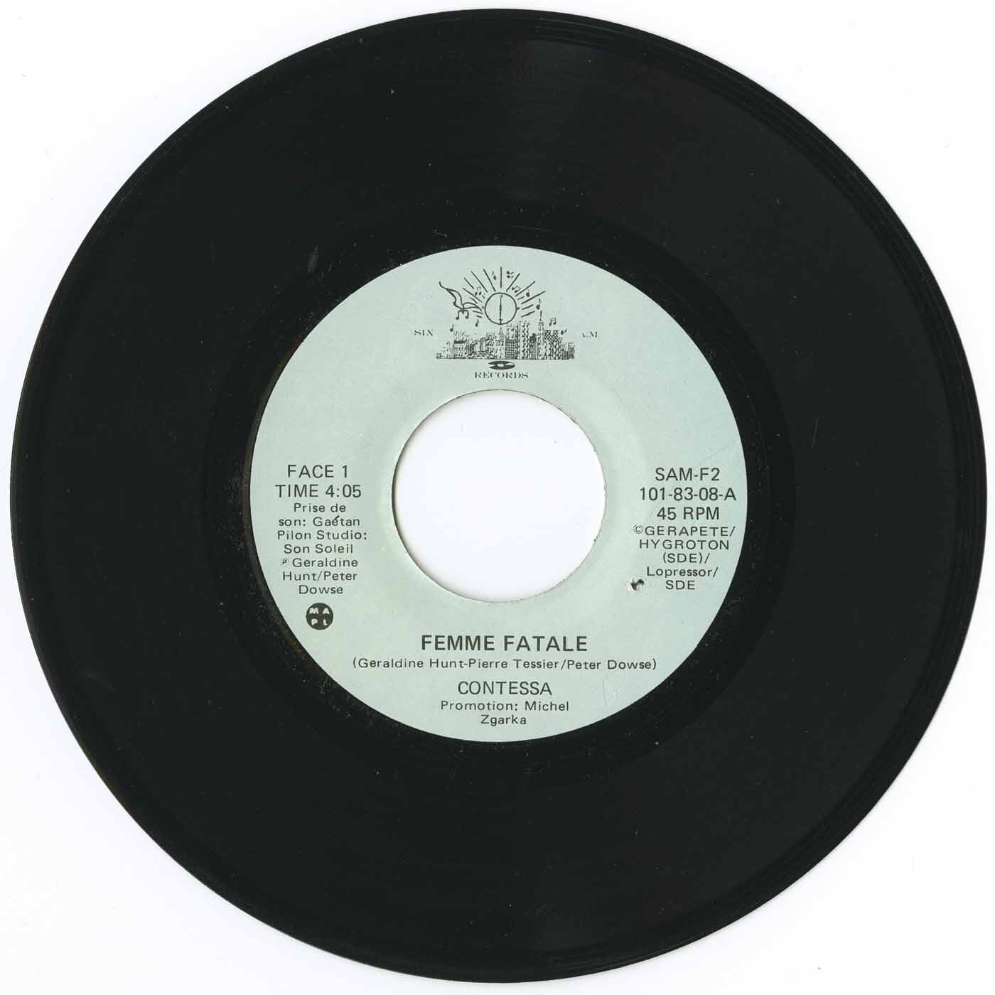 Originally posted here June 22, 2013, re-transferred on Nov 19, 2023 with a better sound system. These francophone tracks share similar arrangements to songs originally done by Chéri in 1982. "Super Star" uses similar instrumentation as "Star Struck" and "Femme Fatale" is a different version of "Murphy's Law". Both are found here: