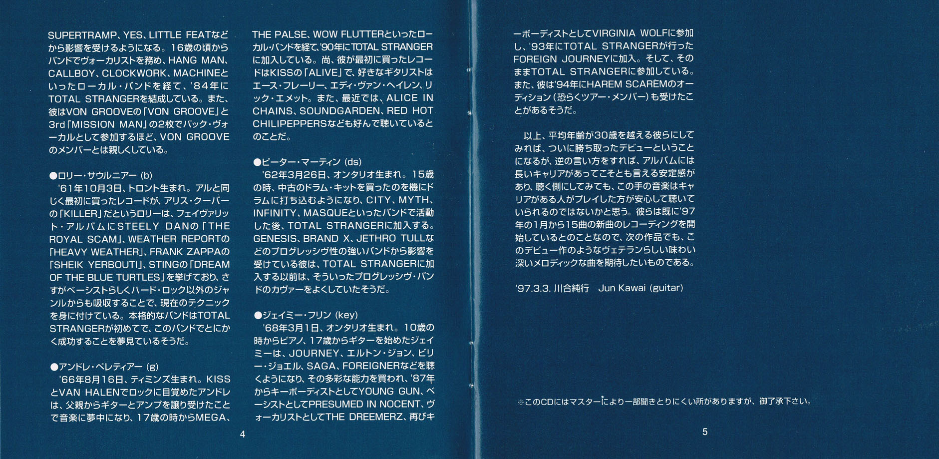 Originally formed in Hamilton, Canada during 1985, TOTAL STRANGER split up several years ago and have remained largely inactive ever since. Their self-titled album "Total Stranger" was originally released in 1997. It was recently reissued which is why I am reviewing it today.