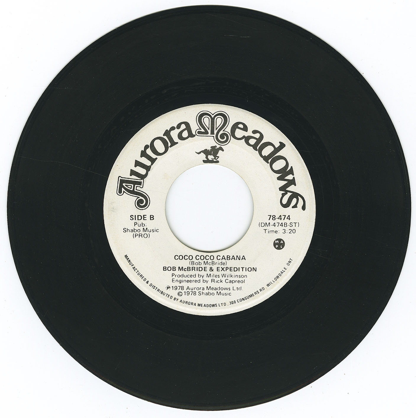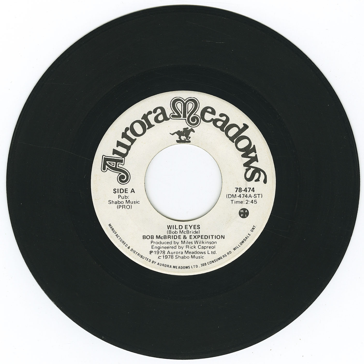 Former Lighthouse vocalist Bob McBride released two, maybe three singles with his band 'Expedition' on the Aurora Meadows imprint. While confirmed catalog numbers include 78-474 and 78-476, there might be a 78-475 nestled in-between. He also released a live self-titled album with Expedition produced by Chris Skene, but the studio recordings remained exclusive to the Aurora Meadows label. For the line-up I am assuming it is the same as the live album, but that would be difficult to confirm at this point.