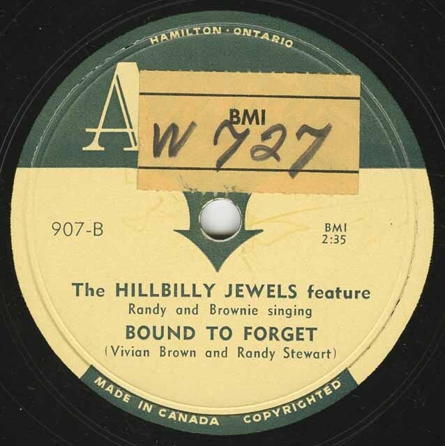 Another scarce early fifties single by this great Ontario group, forerunner of the Family Brown, a popular 70s, 80s Canadian country group. I'm especially fond of 'Bound To Forget'.