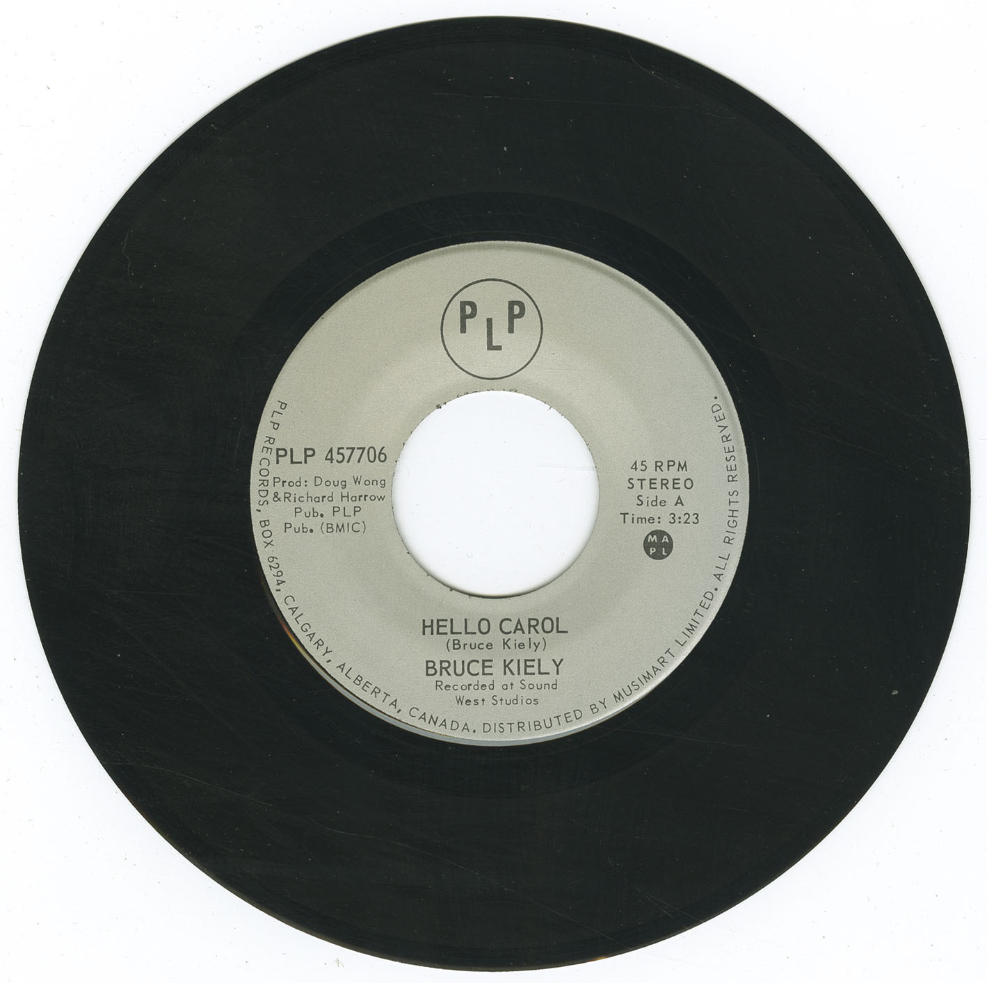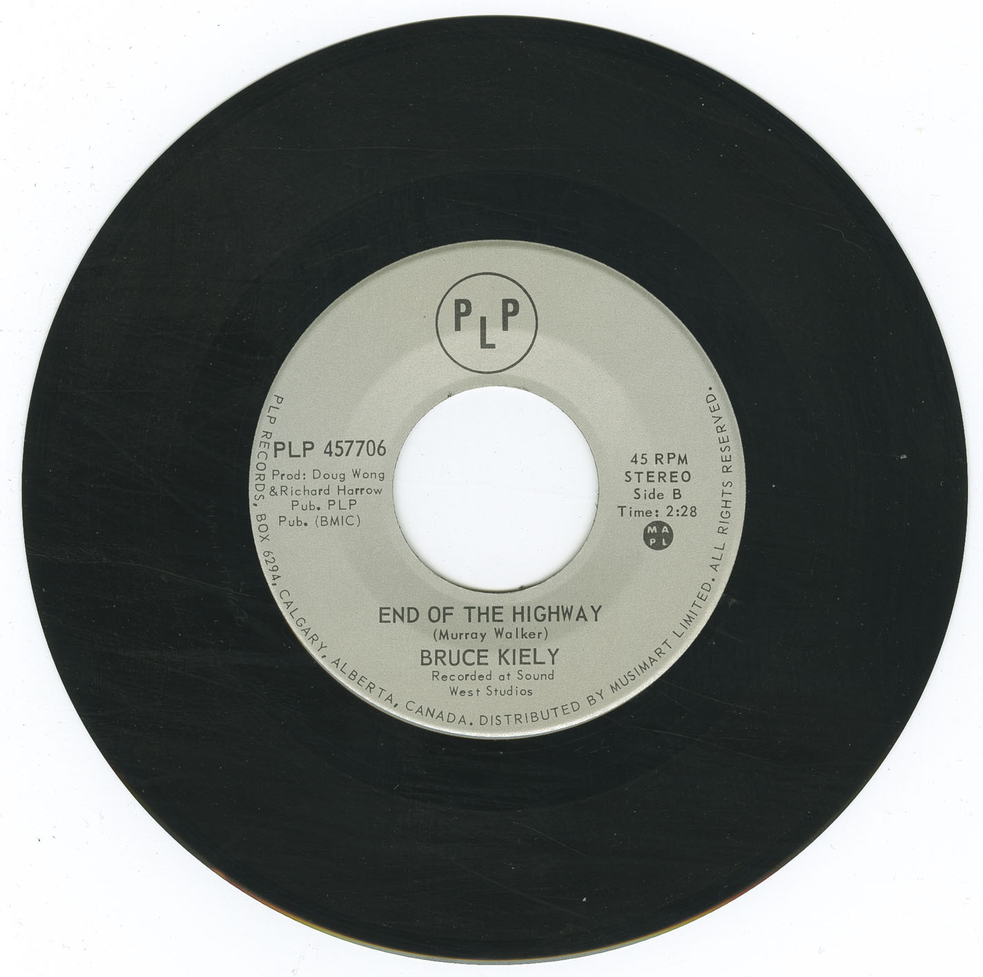 Issued by Calgary’s PLP Records, this single was part of a short run of locally produced releases recorded at Sound West Studio, operated by Peter Bentley. The sessions brought together a circle of Calgary musicians and producers active in the city’s mid-’70s scene, including Doug Wong (producer, A&R, and later a key figure in Alberta’s music promotion circuit), Richard Harrow (engineer, musician, and two-time Juno Award winner), and Bruce Innes (frontman of the internationally known folk-country group The Original Caste). Reports from those involved indicate that noted guitarist Gaye Delorme—renowned for his session work, film scores, and hit songwriting—may have contributed parts during the recording. PLP was owned by Paul Palaschuk and relied on a small roster of regional artists, with distribution handled within Alberta.