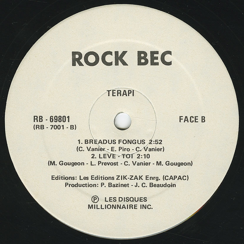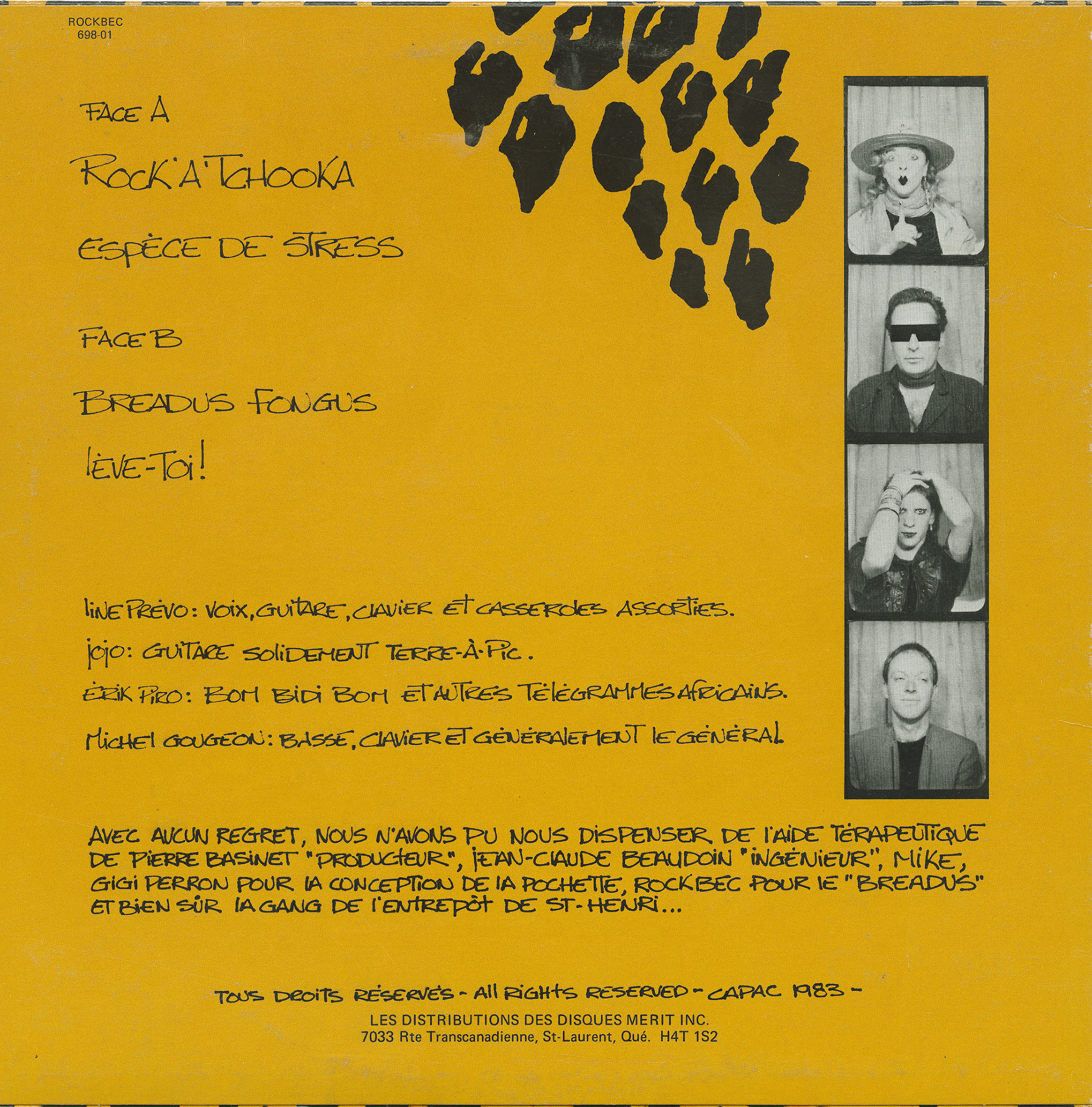 With no regrets, we could not do without the therapeutic help of Pierre Basinet "Producer", Jean-Claude Beaudoin "Engineer", Mike, Gigi Perron for the cover design, Rockbec for the "Breadus," and of course, the gang from the St-Henri warehouse...