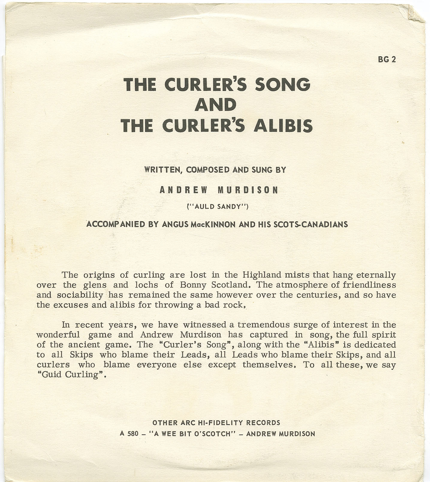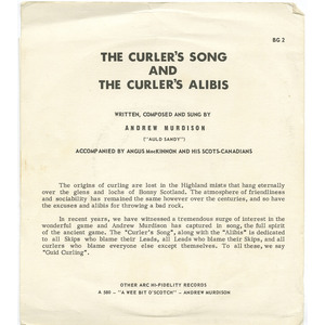 "The Curler's Song" was a seven-inch single backed by "The Curler's Alibi." As mentioned in the Feb. 27, 1965 edition of Billboard magazine, Murdison's release was the first time Ace Records offered a vinyl disc and its corresponding sheet music together in a deluxe package for $1.50.