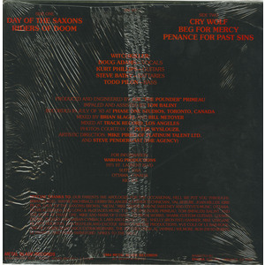 Our parents (we apologize for the occasional hell we put you through), Brian Slagel, Wayne Archibald, Gerry Bate (leather technician), Val Berube, Joan Miller, Kirk Pilon, Duff of the Saxons Brown, “Metal” Mike, Walter Sweeney and Steve’s Misti, Ottawa, Peter Adamson and John Scharf of Phase One, Joe “Pounder” Primeau, Tom (Impaled) Balint, and everyone at Phase One, Mike and Mark of Hagar Metalworks, Shark Custom Guitars, Ludwig Drums and Sabian Cymbals, Lars and Shelly (Iron Fist) Hammer, Mike Verge, Carl Wright, J.B. Bechler and Exeter Productions, Yves Cole of Le Bar Rock and Discos Extraordinaire, the Warhag, “Al” (Animal) Wilmore, Ron (I’m So Burnt) Swinford. Spikes to the Metal.