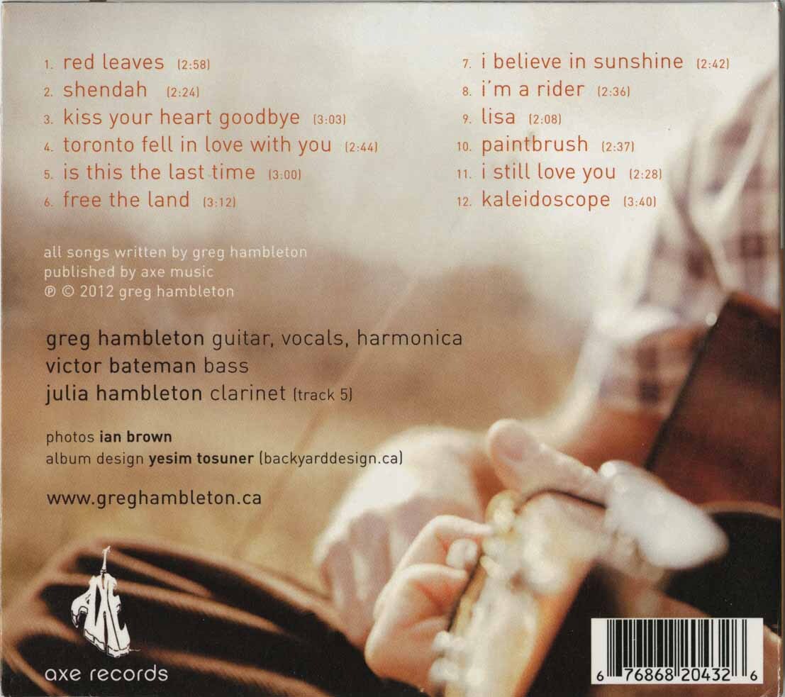 Many of Hambleton’s songs refer to stories and experiences from his own life. Written in a troubadour style the songs are about city living (“Toronto Fell In Love With You”), times in Toronto’s 60’s Yorkville scene (“Is This The Last Time” & “Shendah”), anthems and love songs (“Free The Land” & “I Still Love You”), a new version of his hit song first recorded by Madrigal in 1972 (“I Believe In Sunshine”) and “Red Leaves”, inspired by the Muskoka fall panorama.