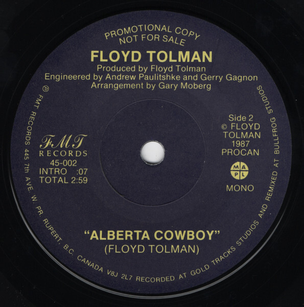 Floyd Tolman's 'Alberta Cowboy' spent a few weeks on the Canadian Country Top 40, reaching a high of 37. He was nominated for two country music awards.