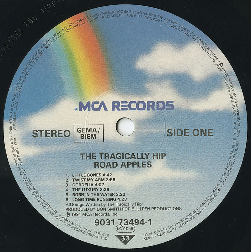 Road Apples, the Hip's second record, sealed the band's Canrock sound and set the stage for bands like Our Lady Peace to rule the '90s. Following the success of Up to Here, Road Apples solidified the band's trademark sound and sailed past the sophomore slump. Songs like "Little Bones," "Twist my Arm" and "Cordelia" give us some classic Hip sounds while slower tracks like "Long Time Running" and "Fiddler's Green" establish the band as a more complex entity, capable of delivering beautifully written ballads that sound as fresh and relevant today as they did when they were released in 1991.