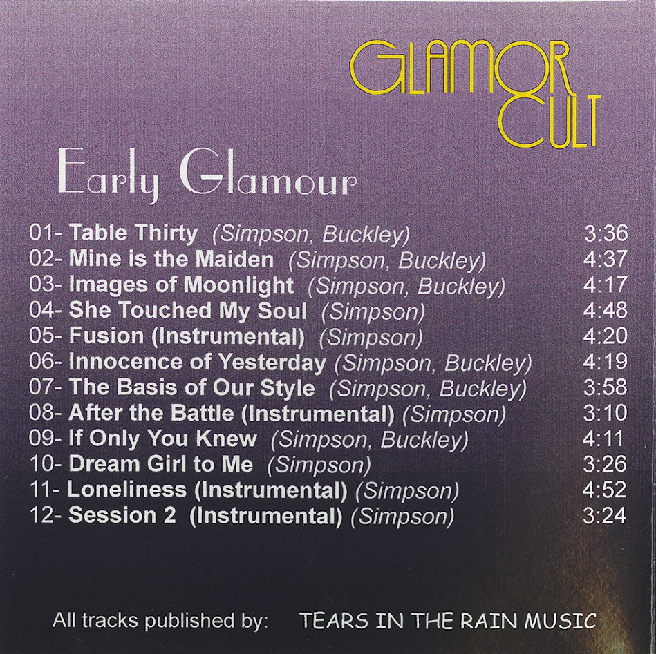 The 'Early Glamor' CD was released in 1997 after I had the digital masters done from the master tapes. There was only ten copies of the 'Early Glamor CD created.