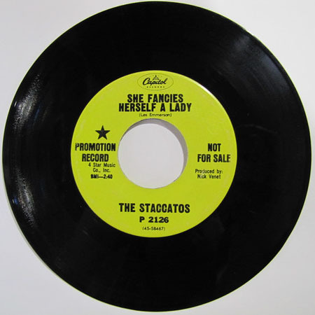 Staccatos - Walker Street b/w She Fancies Herself A Lady (promo)