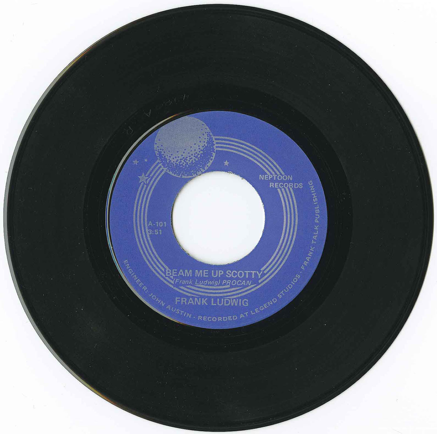 "Beam Me Up Scotty" I had recorded this song with Randy who let me have the tracks. A local record store "Neptoon Records" helped press it onto a '45. We used to close with an extended version which went into other songs with the same chord progression, including "Lee Michael's Heidi Hey, Hieidi Hi, the Beatles "Hey Jude" and Traffic's "Dear Mr. Fantasy"..etc. One night we actually played it for 20 minutes past "last call" for a total of about 30 minutes on the one song. there were no complaints.