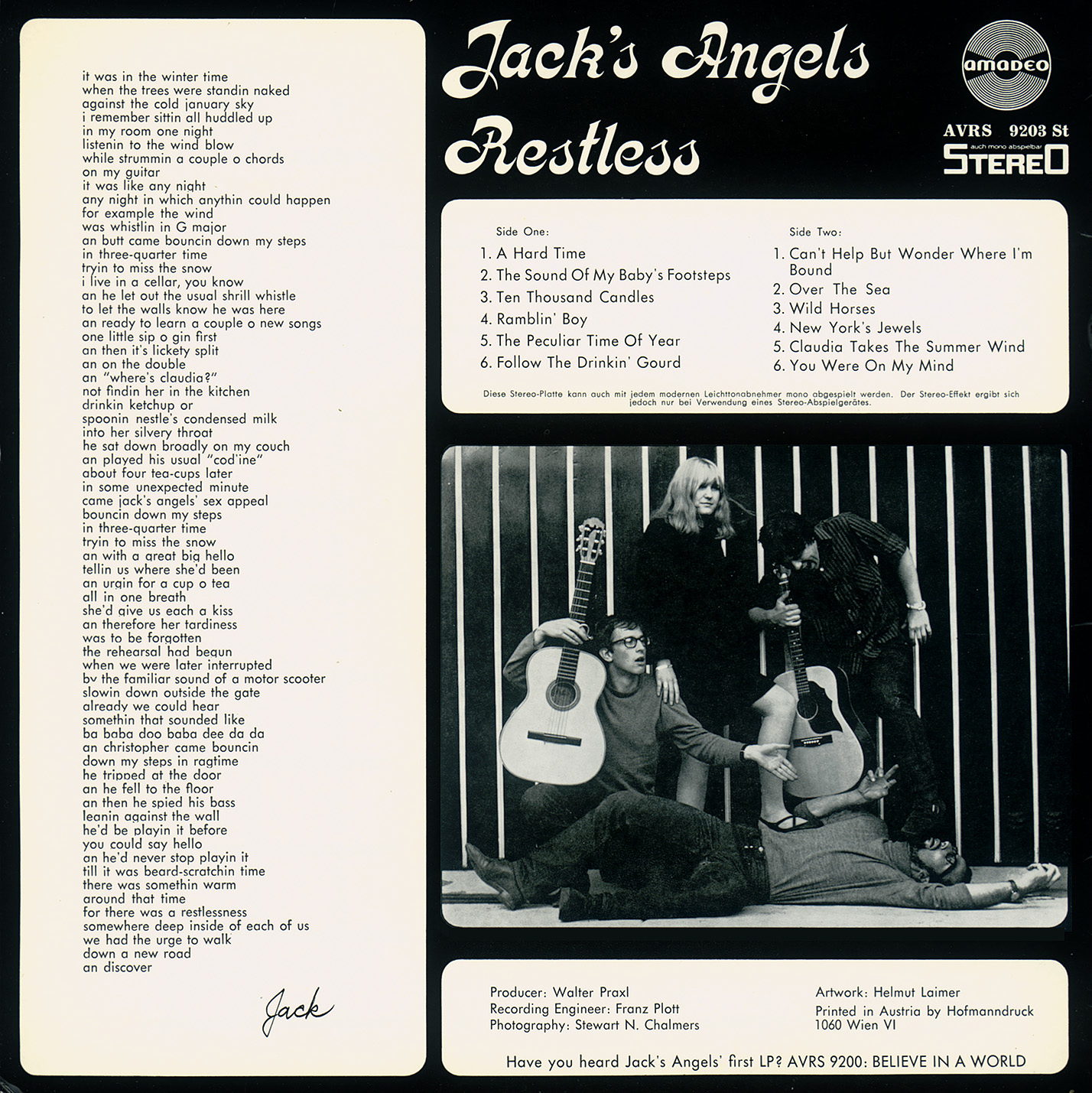 Citizenfreak is proud to present the second album by Jack’s Angels, released in 1967 and brought to you by Jack Grunsky and Robert Williston. Originally available only in Europe, this follow-up album builds on the foundation of their debut, showcasing the band’s evolving sound and Jack’s burgeoning brilliance as a songwriter. Supported by the vocals of Claudia Pohl and Butt Wegscheider, Jack’s Angels continued to captivate audiences with their dynamic blend of vocals and musicianship. This remarkable second release from 1967 is now available exclusively at Citizenfreak - relive the journey of one of music’s most legendary beginnings!