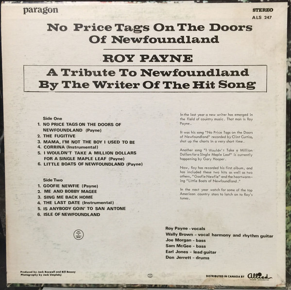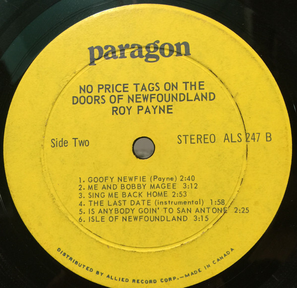 And his sound! I was being raised on Wilf Carter, Jim Reeves and Marty Robbins on my parents’ side. My sister was into the Stones and AM country while my brother was a true blue Dylan fan. I had it all coming at me and here suddenly was Roy Payne, sounding like some Newfoundland Banshee channeling a blend of Merle Haggard, Johnny Cash, George Jones, Kristofferson and Stomping Tom Connors! His guitar picking and bar room beat (although at my tender age I didn’t realize this aspect) was infectious. Real toe tapping stuff! This was before I grew into the sounds of The Who, Tull, T-Rex, Bowie and Zeppelin.