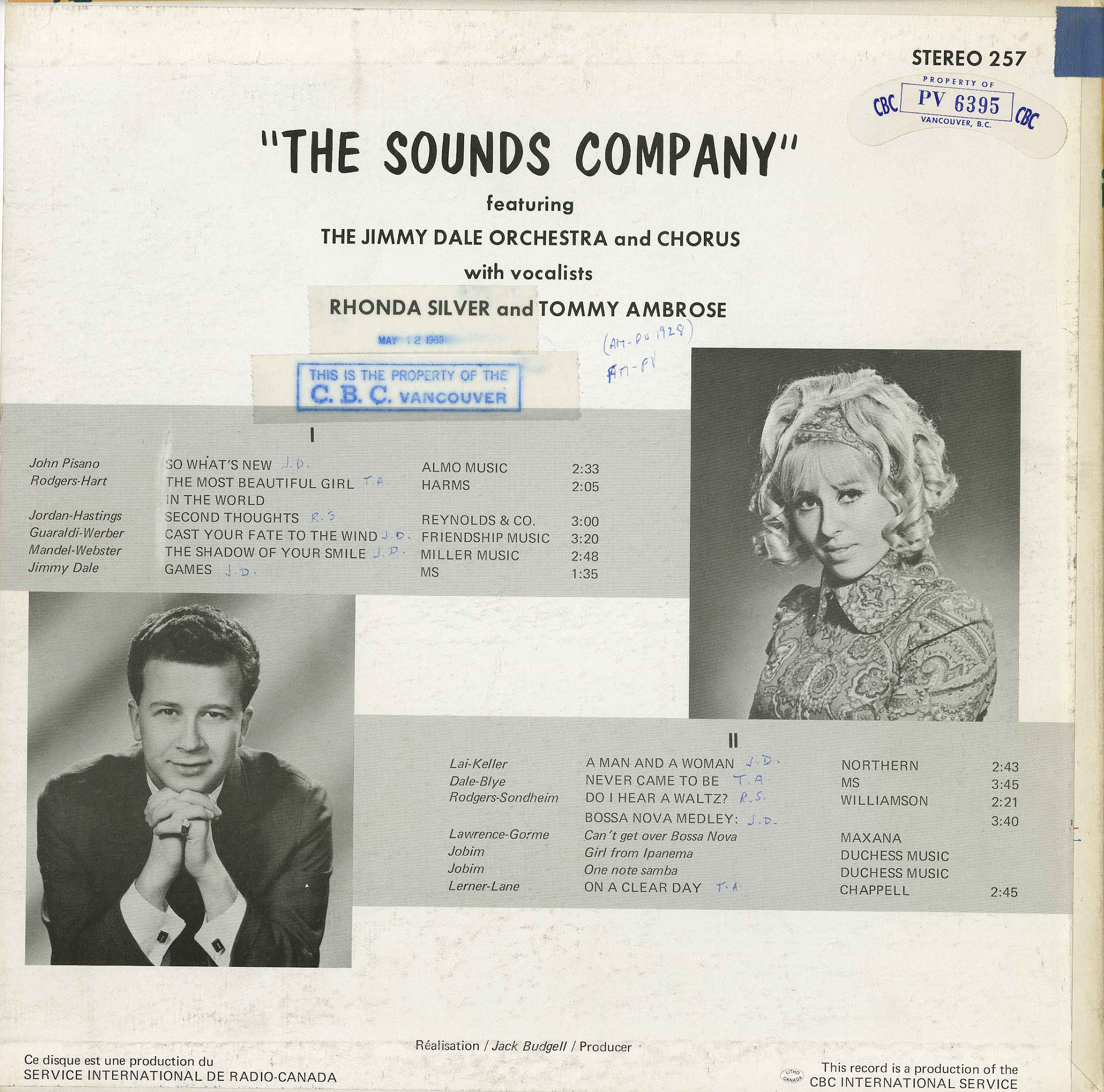 Sounds Company - Jimmy Dale Orchestra & Chorus with Rhonda Silver and Tommy Ambrose BACK