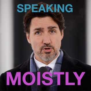 "Speaking Moistly" is a remix song of Canadian prime minister Justin Trudeau's voice edited by Brock Tyler, known on YouTube as anonymotif. It is based on Trudeau's words from a press conference regarding the COVID-19 pandemic in Canada. The quote "speaking moistly" refers to respiratory droplets that are spit out when one speaks, which can potentially spread COVID-19.
