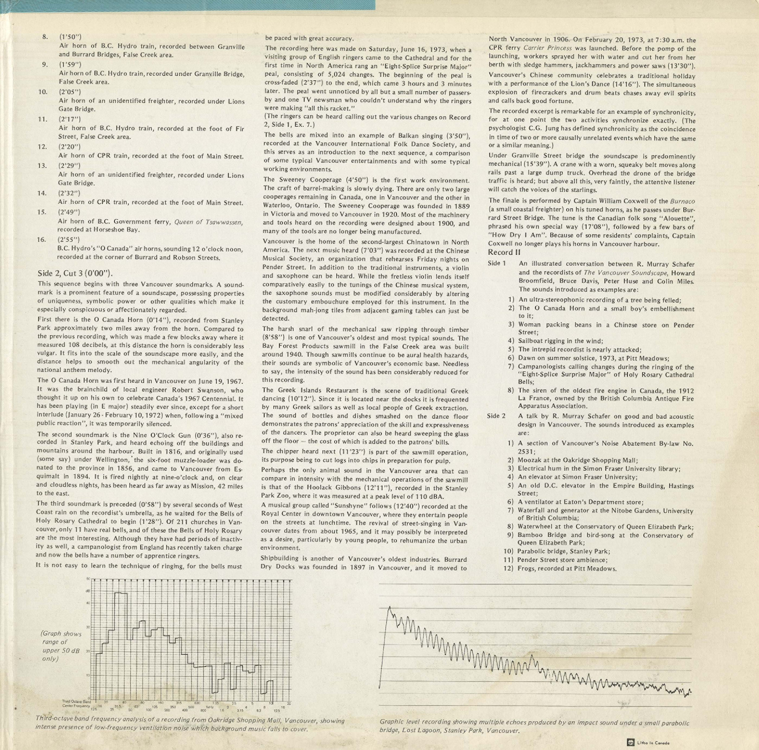 A trip through the soundscape that is Vancouver in the early 1970's. As realized by R. Murray Schafer and the World Soundscape Project.