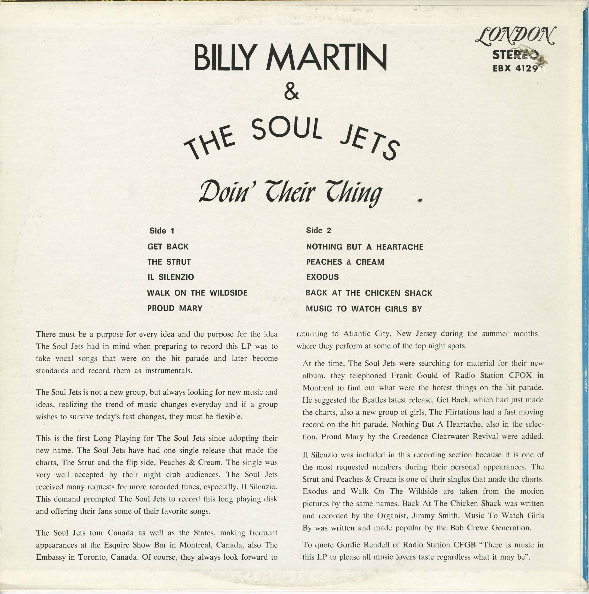 Unlike his other albums, this one was never repressed. Has many funk-soul instrumentals, as well as instrumental funky covers. Of course you can count many drum breaks suitable for sampling on this album. Billy Martin is, just as Frank Motley, an American-born trumpeter who emigrated in Canada before the turn of the 60's. They both worked as well as bandleader in the early R’N’B field and session musicians for nutritional subsistence. After many recordings for the London label, the band was finally allowed to do "their thing", resulting in this rare album. This was the first of three interesting albums released in late 60's through early 70's. Although this London label is not as rare as the "You Turn Me On" and "Strawberry Soul", this is still a rarity in itself. It's a Canada-only release.