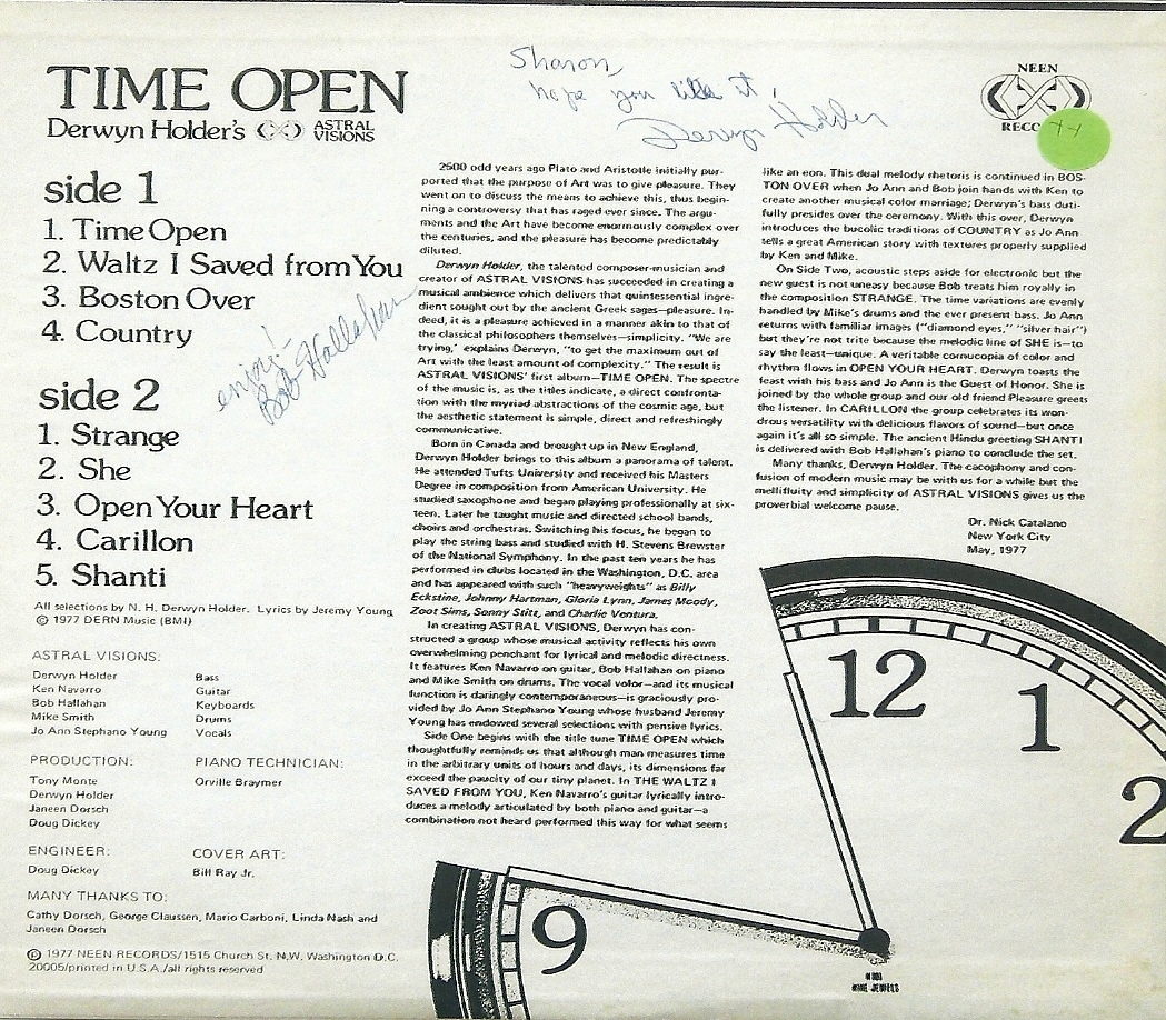 Born in Canada and brought up in New England, DH brings to this album a panorama of talent. He attended Tufts Univ. and received his Masters in composition from American U. He studied sax and began playing professionally at sixteen. Later he taught music and directed school bands, choirs, orchestras. Switching his focus he began to play the bass and studied with H Stevens Brewster of the national symphony,. In the past 10 years he has performed in clubs located in the Wash. D.C. area and has appeqared with such "heavyweights" as Billy Eckstein, Johnny Hartman, Gloria Lynn, James Moody, Zoot Sims, Sonny Stitt, and Charlie Ventura.