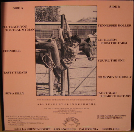 Glen signed to Amoeba Records in Los Angeles. His first two LPs, Chicken & Biscuits (1988) and Squaw Bread (1989) merged queerness, countrified yee-haw yodeling, and electronic grooves. "Do Me" from the first LP was a club hit, remixed by Psychic TV and re-released on WaxTrax! Records. For his next album, Boned (1991), Glen assembled a live band and put forth a punkier sound, leading to his cowpunk reputation. The band included Dean Opseth on bass and Dave Kendrick (Sparks, Devo) on drums.